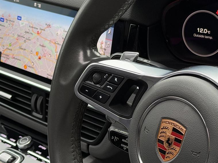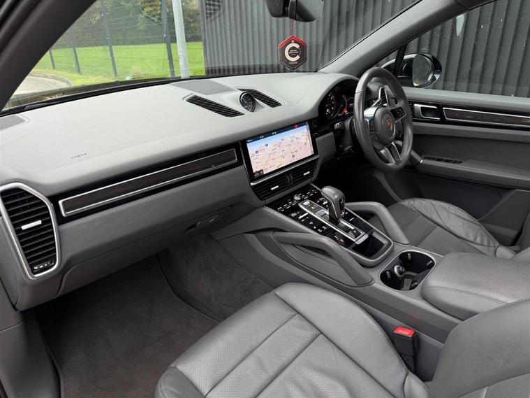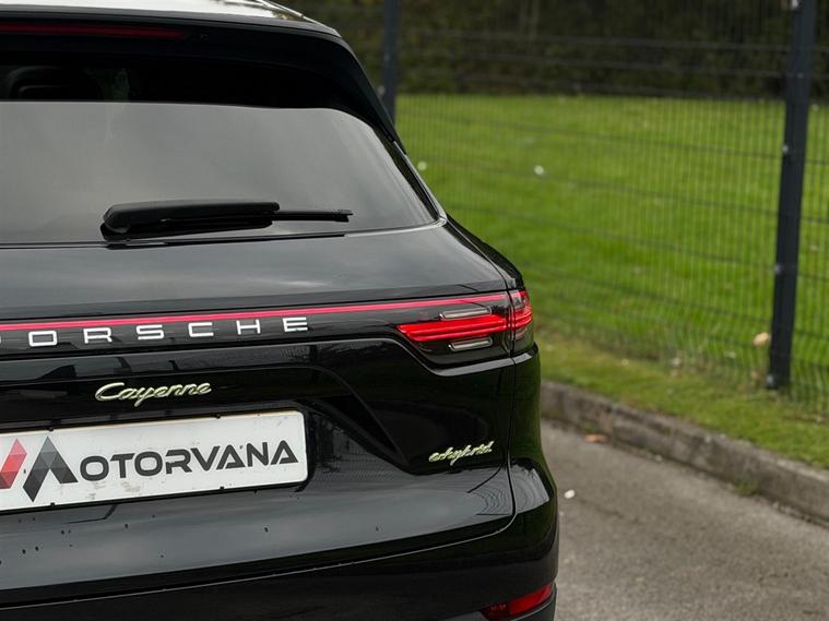 This Porsche Cayenne 3.0 V6 E-Hybrid Finished in Jet Black and this vehicle comes with the following specification: 22in Alloys Wheel - Cayenne Sport Classic in Black - High Gloss | Smooth Finish Leather - Slate Grey | Panoramic Roof System | Adaptive Air Suspension including Porsche Active Management - PASM | Driver Memory Package | Front Heated Seats | Interior Package - Carbon | LED Main Headlights in Black including Porsche Dynamic Light System - PDLS | BOSE Surround Sound System | Exterior Package in Black High Gloss | Ambient Lighting | Privacy Glass | Wireless Charging | Navigation | Bluetooth Audio & Connectivity |DAB & Radio | Apple Car Play | 2 Keys | Full Service History |