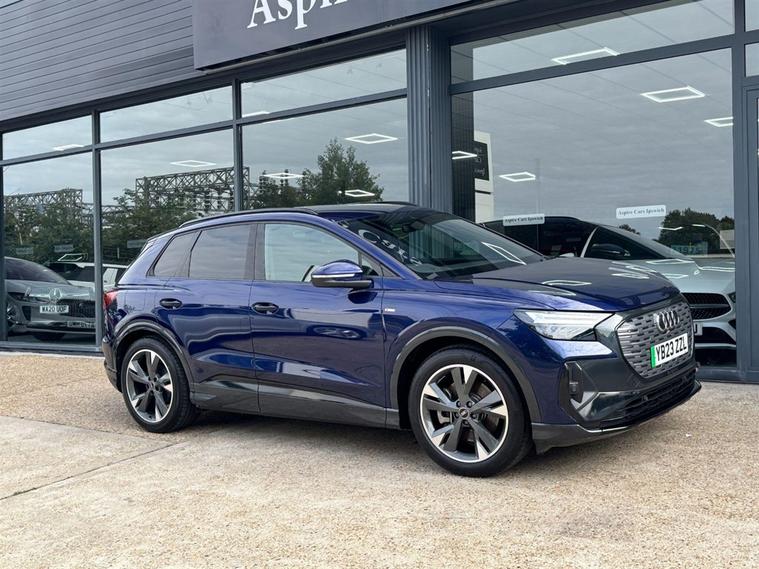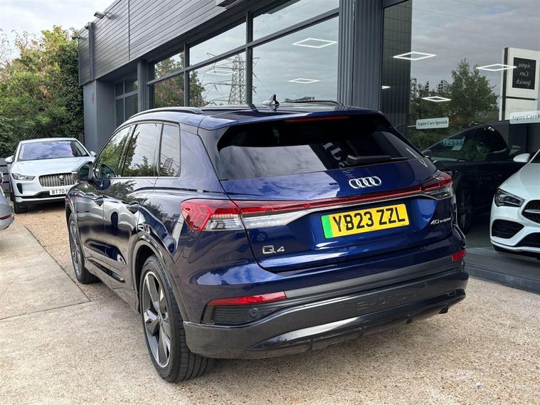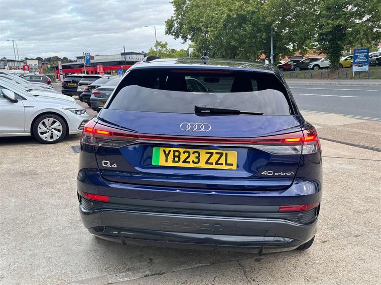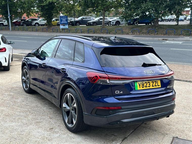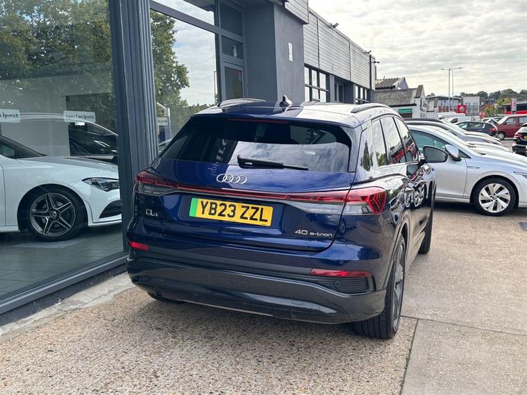 Only 6.9% APR Representative!! still Audi warranty till July 2026. This 2023 Audi Q4 e-tron S line boasts a clear vehicle history and has had only one owner, offering you peace of mind. As an electric vehicle, it features an 82 kWh battery with a maximum range of 311 miles, perfect for your daily commutes and longer journeys. The S line trim enhances its appeal with striking 20in alloy wheels in a graphite grey gloss turned finish, complemented by advanced Matrix LED headlights that include dynamic light sequencing and indicators. providing a maximum range of 311 miles | 1 Previous owner Full Service History | HPI Certificate Supplied | ULEZ Vehicle |Finance Available From 6.9% APR Representative | We give you a Peace of mind 6 months warranty ( Nationwide warranty ) ( Extended warranty available up to 3 years )) Part exchanges considered |FINANCE INFORMATION PLEASE SEE OUR WEBSITE dealer's website | All Wheel Drive, 90 kWh battery, providing a maximum range of 298 miles...195 ROAD TAX. Ready to go same day . The Q4 e-tron S line offers impressive practicality, highlighted by its large boot space, providing ample room for shopping or luggage. Its charging capabilities are also noteworthy; a full charge at home using a 7kW charger takes approximately 11 hours and 30 minutes, while rapid public charging can take you from empty to 80% in just 30 minutes. These features, combined with its impressive 311-mile range, position this Audi Q4 e-tron S line as a superior choice for those seeking an efficient and well-equipped electric SUV.