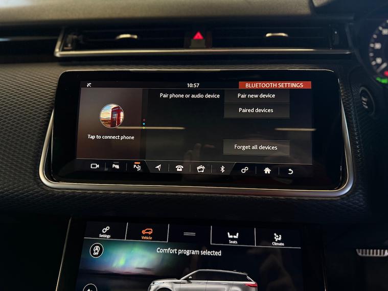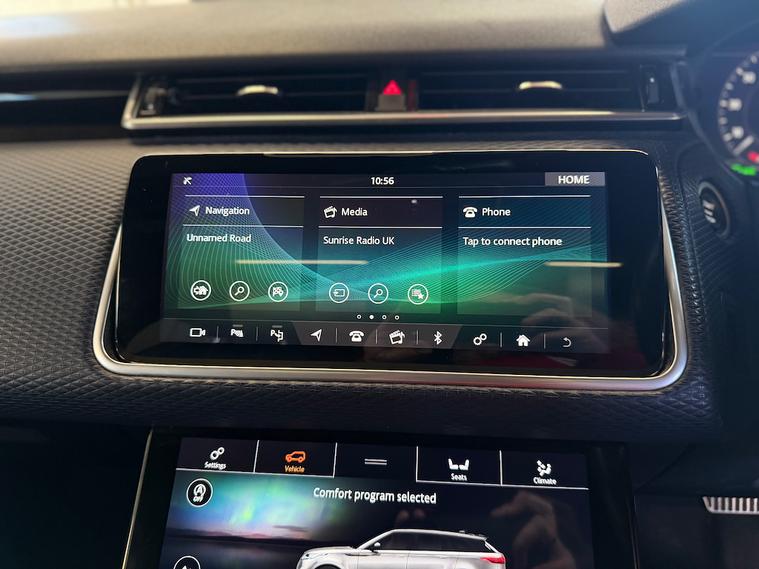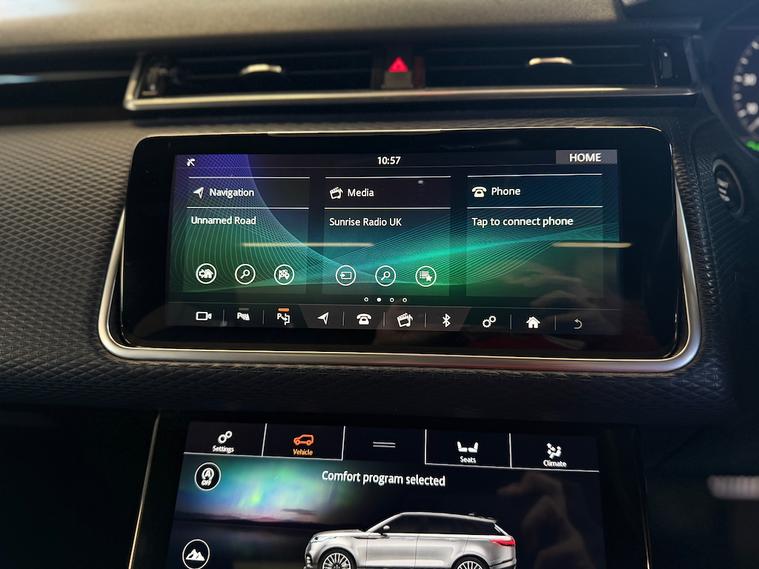 Cuffley Motor Company present this Land Rover Range Rover Velar Diesel Estate 2.0 D180 R-Dynamic SE 4dr Auto finished in Black with Black and dark Blue leather interior. This stylish car is powered by a 2.0L diesel engine and equipped with an automatic transmission, offering exceptional performance and efficiency for all driving needs. Features include 20" alloys, 360 parking aid, memory/heated electric seats, sat nav, cruise control, multi-function steering wheel, auto lights and air con. The audio/visual system includes Carplay, Bluetooth, DAB, AUX, USB and FM/AM radio. This car comes with 1 key, service history and has only had 1 previous owner. All cars have a HPI check. We are a family run business established in 1979. Finance quotations are available via our website on dealer's website follow the finance options underneath each individual advert. Please contact Jamie on 01707512548 or 01707512548 for further information.