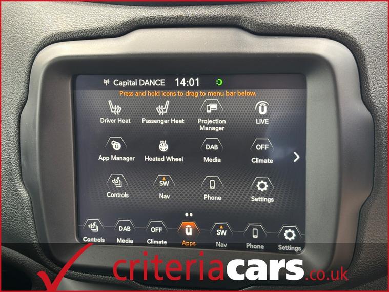 FULL HEATED LEATHER INTERIOR. SAT NAV. MoT 04-2026. Service history, price to include a pre delivery inspection. **We will be CLOSED on Saturday 20th September for our Holidays, back open again on Monday 29th September** 2019 Used Jeep Renegade cars for sale in Ely near Cambridge, Cambridgeshire. In Black this used Jeep Renegade Limited, 1.0l, petrol, Manual, Estate, with 65, 000 miles on the clock is another fine example of whats available from used car dealers, Criteria Cars (UK) Ltd, Ely near Cambridge, Cambridgeshire. We have up to 50 cars in stock. Our cars are all verified using Motorcheck and valeted to the very highest standards. As an AA dealer, all of our cars are offered with 12 months free AA breakdown cover and warranty options from 3 months to 3 years. Driver, Driver+ and our new 'Superior' warranty which also covers wear and tear. We can arrange a suitable finance package for you, (subject to status), debit cards & bank transfers are also accepted. Please note, any customers wanting to arrange their own finance through a Third Party Finance Company will be subject to a 299 admin fee for processing documentation to the Third Party Finance Company. If you are viewing this on a 3rd party website, please visit our own website dealer's website for more pictures and technical information. DONT FORGET TO ASK ABOUT OUR 12 MONTHS FREE AA BREAKDOWN COVER
