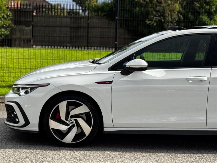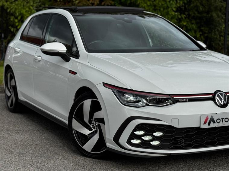 This Volkswagen Golf TSI GTI DSG Finished in Metallic White, and this vehicle comes with the following specifications: 18in Alloy Wheels - Richmond | Jacara Red Cloth - Soul Black | Winter Pack - Heated Seats & Heated Steering |Panoramic Sunroof | Navigation | Wireless Charging | Front & Rear Sensors | Bluetooth Audio & Connectivity | DAB & Radio | Wireless AppleCar Play | Privacy Glass | 2 Keys | Full Volkwagen History | Volkswagen Warranty Till March 2026