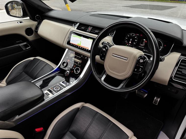 This Range Rover Sport P400e Autobiography Dynamic Finished in Fuji White and this vehicle comes with the following specification: 21in Alloy Wheels - 9 Spoke Style 9001 | Semi Aniline Perforated Leather - Ebony & Ivory | Pixel-Laser LED Headlights | Park Pro Pack | Head-Up Display | Meridian Sound System | TV- Digital | Privacy Glass | 22-way Memory Front Seats with Winged Headrests | Grand Black Vaneer | Four-Zone Climate Control | Front Centre Console Refridgerator Compartment | Heated & Ventillated Front & Rear Seats | Soft Close Doors | Electric Deployable Side Steps | Black Pack | Navigation | Bluetooth Audio & Connectivity | DAB & Radio |Apple CarPlay | Full Land Rover History | 2 Keys | Ambient Lighting