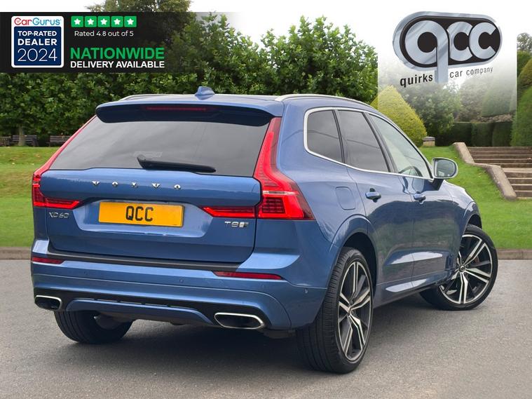 NATIONWIDE DELIVERY AVAILABLE! THIS VOLVO XC60 2.0h T8 TWIN ENGINE 10.4kWh R-DESIGN PRO FINISHED IN BURSTING BLUE WITH CHARCOAL BLACK NAPPA LEATHER AND ALCANTARA BENEFITS FROM THE FOLLOWING SPECIFICATION, ELECTRIC PANORAMIC GLASS SUNROOF WITH ELECTRIC BLIND, 21" ALLOYS, XENIUM PACK, ACTIVE 4 CORNER AIR SUSPENSION, DRIVING MODE SETTINGS, ORREFORS CRYSTAL GEAR LEVER, SENSUS CONNECT WITH HIGH PERFORMANCE SOUND WITH 10 SPEAKERS, INTELLISAFE PRO PACK, 12.3" TOUCH SCREEN WITH SAT NAV, REAR VIEW REVERSE CAMERA, 360 SURROUND VIEW CAMERA, PARK ASSIST PILOT WITH AUTOMATIC PARALLEL AND 90' PARKING, DIGITAL DASH, HEATED M/F/S/WHEEL WITH CRUISE CONTROL, PADDLE SHIFT AND VOICE CONTROL, ELECTRIC HEATED MEMORY CONTOUR SPORTS SEATS WITH LUMBAR SUPPORT, KEY LESS DRIVE, ELECTRIC FOLDING EXTERIOR MIRRORS, FRONT AND REAR PARK DISTANCE CONTROL, HEATED FRONT WIND SCREEN, DUAL ZONE AIR CON CLIMATE CONTROL, AUTOMATICALLY DIMMING REAR VIEW MIRROR, AUTOMATIC HEAD LIGHTS, BLUETOOTH PHONE PREP, SMARTPHONE INTEGRATION INCLUDING APPLE CARPLAY AND ANDROID AUTO, PRIVACY GLASS, ISOFIX POINTS, POWER TAIL GATE/BOOT LID, ROOF RAILS, CENTRE ARM REST, PAN ROOF, QUIRKS CAR COMPANY ARE VERY PROUD WINNERS OF RUNNER UP FOR AUTOTRADER RETAILER OF THE YEAR 2021, WINNERS OF AUTOTRADER HIGHLY RATED FOR OUR CUSTOMER SERVICE 2021/20, AND WINNERS OF CAR GURUS TOP RATED DEALER 2021/20/19. WE USE THIRD PARTY SOURCES TO OBTAIN STANDARD AND OPTIONAL FITTED FEATURES AND SPECIFICATIONS. WE CANNOT BE HELD LIABLE FOR ITS ACCURACY SO PLEASE VERIFY THESE DETAILS WHEN VIEWING THE VEHICLE PRIOR TO PURCHASE. YOU MUST PHYSICALLY CHECK THE SPECIFICATION OF THE VEHICLE ON SITE PRIOR TO PURCHASE.