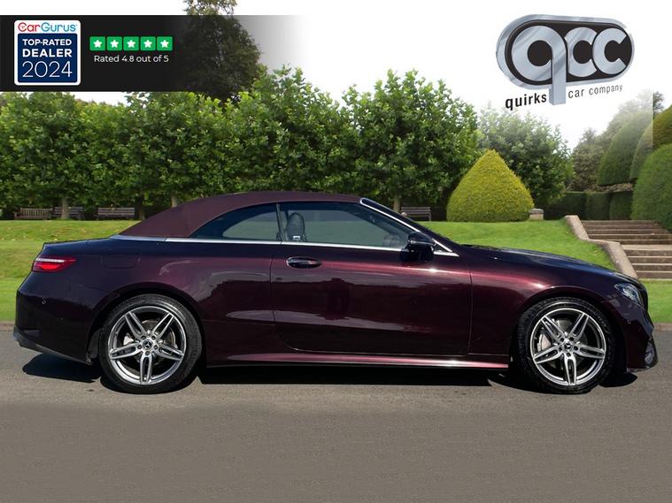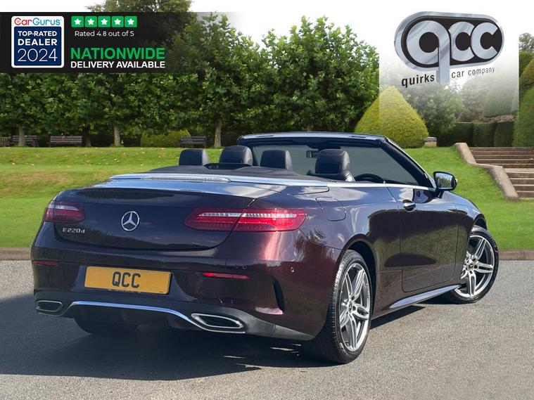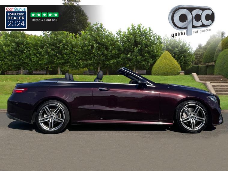 NATIONWIDE DELIVERY AVAILABLE! THIS MERCEDES E220d 2.0 AMG LINE CABRIOLET FINISHED IN RUBELLITE RED METALLIC WITH BLACK LEATHER AND ALCANTARA BENEFITS FROM THE FOLLOWING SPECIFICATION, RED RUBY BLACK POWER HOOD/SOFT TOP, PREMIUM PACK, AIRSCARF (NECK WARMER), CONVERTIBLE COMFORT PACK, 19" ALLOYS, REAR VIEW REVERSE CAMERA, SUPERSPORT M/F/S/WHEEL WITH CRUISE CONTROL, ELECTRIC HEATED MEMORY SEATS, ELECTRIC FOLDING EXTERIOR MIRRORS, AIR CON CLIMATE CONTROL, AUTOMATICALLY DIMMING REAR VIEW MIRROR, AUTOMATIC HEAD LIGHTS, BLUETOOTH PHONE PREP, CENTRE ARM REST, QUIRKS CAR COMPANY ARE VERY PROUD WINNERS OF RUNNER UP FOR AUTOTRADER RETAILER OF THE YEAR 2021, WINNERS OF AUTOTRADER HIGHLY RATED FOR OUR CUSTOMER SERVICE 2021/20, AND WINNERS OF CAR GURUS TOP RATED DEALER 2021/20/19. WE USE THIRD PARTY SOURCES TO OBTAIN STANDARD AND OPTIONAL FITTED FEATURES AND SPECIFICATIONS. WE CANNOT BE HELD LIABLE FOR ITS ACCURACY SO PLEASE VERIFY THESE DETAILS WHEN VIEWING THE VEHICLE PRIOR TO PURCHASE. YOU MUST PHYSICALLY CHECK THE SPECIFICATION OF THE VEHICLE ON SITE PRIOR TO PURCHASE.