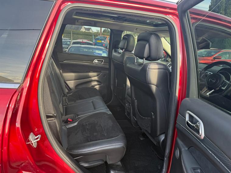 Jeep Grand Cherokee 6.4 HEMI SRT8 in metallic red. An absolutely gorgeous example here, comes with loads of service stamps, clearly a very well cared for car and it shows. This remarkable 2013 model boasts a powerful 6.4L engine that delivers an exhilarating 461 BHP, achieving 0-62 mph in an impressive 4.9 seconds. With its eye-catching red exterior and estate body type, this vehicle is designed to turn heads while providing unparalleled performance. Massive spec including Half Leather Upholstery, Heated & Cooled Seats, Heated Rear Seats, Sat-Nav, Reversing Camera, Bluetooth Hands Free, Bluetooth Audio Streaming, Cruise Control, Dual Zone Climate Control, Front & Rear Parking Sensors, Power Tailgate, A/C, Alloy Wheels, Panoramic Roof....the list goes on and on. Dont miss out on this incredible opportunity to own a Jeep Grand Cherokee that blends luxury, performance, and practicality. Contact us today at 02921223506 to arrange a test drive or for more information. Experience the thrill of driving this exceptional vehicle today!