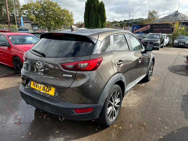 Mazda CX-3 2.0 Sport in metallic grey. An absolutely stunning example here, in awesome condition both inside and out, looks and drives like a car that's covered half the miles. This 2017 model features a powerful 2.0L petrol engine, providing an exhilarating driving experience while returning up to 57mpg. Huge spec too including Full Black Leather Upholstery, Heated Seats, Cruise Control, Climate Control, Reversing Camera, Bluetooth Hands Free, Bluetooth Audio Streaming, DAB Radio, Front & Rear Parking Sensors, Keyless Entry & Start, A/C, Alloy Wheels etc. Don't miss out on the opportunity to own this remarkable Mazda CX-3. For more information or to schedule a test drive, contact Coopers Car Sales today at 02921223506. Experience the perfect blend of style, comfort, and technology with the Mazda CX-3!