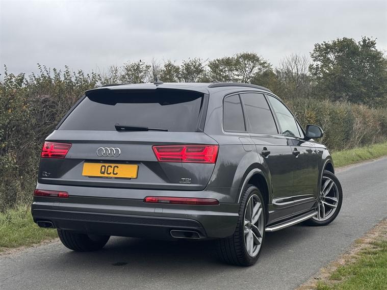 NATIONWIDE DELIVERY AVAILABLE! THIS AUDI Q7 3.0 TDI V6 S LINE QUATTRO FINISHED IN DAYTONA GREY PEARL WITH BLACK LEATHER AND ALCANTARA BENEFITS FROM THE FOLLOWING SPECIFICATION, 7 SEATS WITH 3RD ROW SEATING, ELECTRIC PANORAMIC GLASS SUNROOF WITH ELECTRIC BLIND, 21" ALLOYS, HEAD UP DISPLAY (HUD), TECHNOLOGY PACK, AUDI VIRTUAL COCKPIT, AUDI DRIVE SELECT, SIDE STEPS/RUNNING BOARDS, SAT NAV, SPORTS M/F/S/WHEEL WITH CRUISE CONTROL, PADDLE SHIFT AND VOICE CONTROL, ELECTRIC HEATED SPORTS SEATS WITH LUMBAR SUPPORT, 4x ZONE AIR CON CLIMATE CONTROL WITH REAR AIR CON, ELECTRIC FOLDING EXTERIOR MIRRORS, FRONT AND REAR PARK DISTANCE CONTROL, AUTOMATICALLY DIMMING REAR VIEW MIRROR, AUTOMATIC HEAD LIGHTS, BLUETOOTH PHONE PREP, ISOFIX POINTS, BLACK ROOF RAILS, PRIVACY GLASS, POWER TAIL GATE/BOOT LID, CENTRE ARM REST, PAN ROOF, SEVEN, THIRD, 5+2, TECH PACK, QUIRKS CAR COMPANY ARE VERY PROUD WINNERS OF RUNNER UP FOR AUTOTRADER RETAILER OF THE YEAR 2021, WINNERS OF AUTOTRADER HIGHLY RATED FOR OUR CUSTOMER SERVICE 2021/20, AND WINNERS OF CAR GURUS TOP RATED DEALER 2021/20/19. WE USE THIRD PARTY SOURCES TO OBTAIN STANDARD AND OPTIONAL FITTED FEATURES AND SPECIFICATIONS. WE CANNOT BE HELD LIABLE FOR ITS ACCURACY SO PLEASE VERIFY THESE DETAILS WHEN VIEWING THE VEHICLE PRIOR TO PURCHASE. YOU MUST PHYSICALLY CHECK THE SPECIFICATION OF THE VEHICLE ON SITE PRIOR TO PURCHASE.