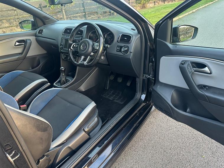 Volkswagen Polo 1.4 TSI BlueMotion Tech ACT BlueGT Euro 6 (s/s) 3dr 2015 Stunning example Drives superb 20 Tax Blue GT come amazingly equipped 150 bhp 70 mpg sensible insurance 9xServices, Serviced at 15727, 29508, 43034, 50278, 58055, 63902, 68553, 80042 & 86926, Factory 17" alloys rear diffuser sports seats side mouldings Remote central locking abs Power steering Cruise control Multi function flat bottom steering wheel Ideal first car, Frugal reliable insurable and sporty appearance coupled with the VAG very strong ACT engine Full service history Part exchange possible Free 12 months breakdown cover, AA drive away insurance, dealer's website 01636222014, Trading since 1993, AA approved dealer, Trading standards approved - CHECK OUT OUR GOOGLE REVIEWS