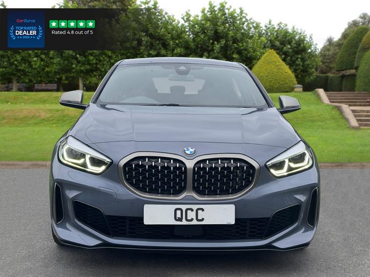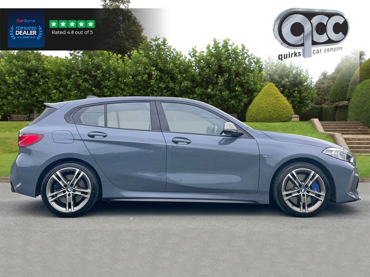 NATIONWIDE DELIVERY AVAILABLE! THIS 1 OWNER BMW M135i 2.0 xDRIVE FINISHED IN STORM BAY METALLIC WITH BLACK ALCANTARA BENEFITS FROM THE FOLLOWING SPECIFICATION, 18" ALLOYS, M REAR SPOILER, TOUCH SCREEN WITH SAT NAV, DIGITAL DASH, M/F/S/WHEEL WITH CRUISE CONTROL, PADDLE SHIFT AND VOICE CONTROL, HEATED M SPORTS SEATS, M SEAT BELTS, ELECTRIC FOLDING EXTERIOR MIRRORS, FRONT AND REAR PARK DISTANCE CONTROL, DUAL ZONE AIR CON CLIMATE CONTROL, BLUE BRAKE CALIPERS, AUTOMATICALLY DIMMING REAR VIEW MIRROR, AUTOMATIC HEAD LIGHTS, BLUETOOTH PHONE PREP, APPLE CARPLAY, ANDROID AUTO, ISOFIX POINTS, CENTRE ARM REST, QUIRKS CAR COMPANY ARE VERY PROUD WINNERS OF RUNNER UP FOR AUTOTRADER RETAILER OF THE YEAR 2021, WINNERS OF AUTOTRADER HIGHLY RATED FOR OUR CUSTOMER SERVICE 2021/20, AND WINNERS OF CAR GURUS TOP RATED DEALER 2021/20/19. WE USE THIRD PARTY SOURCES TO OBTAIN STANDARD AND OPTIONAL FITTED FEATURES AND SPECIFICATIONS. WE CANNOT BE HELD LIABLE FOR ITS ACCURACY SO PLEASE VERIFY THESE DETAILS WHEN VIEWING THE VEHICLE PRIOR TO PURCHASE. YOU MUST PHYSICALLY CHECK THE SPECIFICATION OF THE VEHICLE ON SITE PRIOR TO PURCHASE.