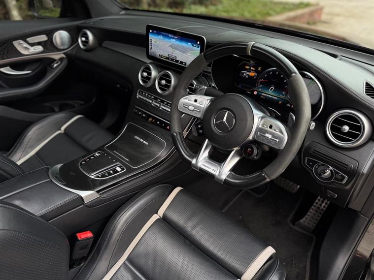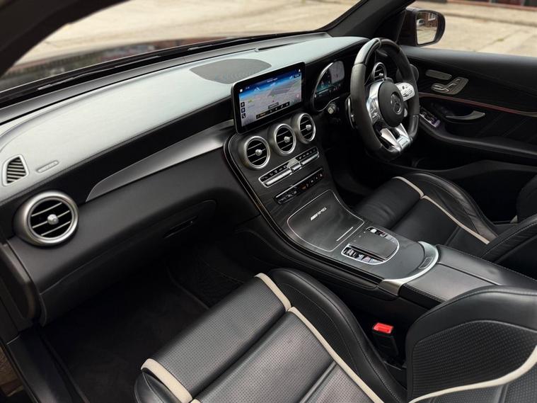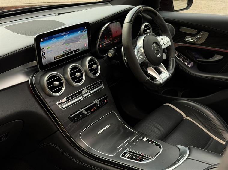 This Mercedes-Benz GLC 4.0 GLC63 V8 BiTurbo AMG S (Premium Plus) Coupe Finished in Obsidian Black and this vehicle comes with the following specification: 21in Alloy Wheels - AMG Cross Spoke - Painted Black | AMG Night Package | Nappa Leather - Black | Head-Up Display | 360 Degree Camera | AMG Drivers Package | AMG Performance Exhaust System | AMG Performance Seats | Air Body Control | Ambient Lighting | Burmester Surround Sound System | DAB | KEYLESS-GO Comfort Package | MBUX Multimedia System | Memory Package | Navigation Services | Smartphone Integration | Running Boards | Sliding Glass Sunroof |Steering Wheel - 3-Spoke Multifunction AMG Steering Wheel in Nappa Leather | Full Service History | 2 Keys | Apple CarPlay
