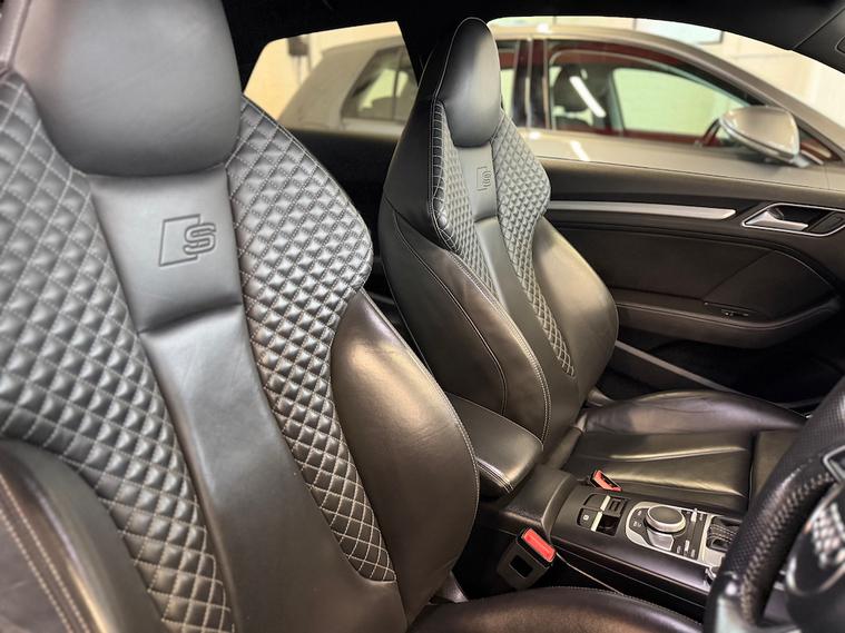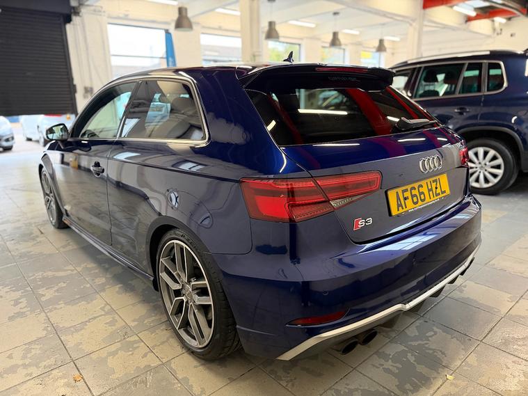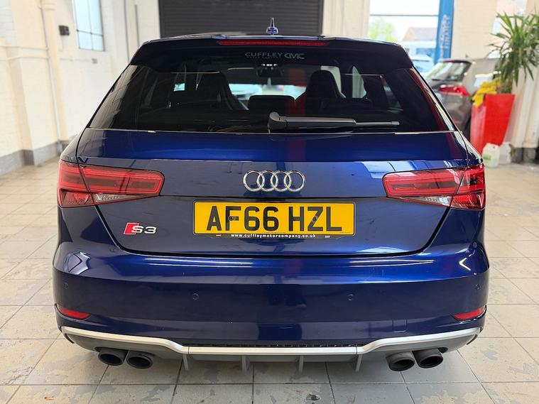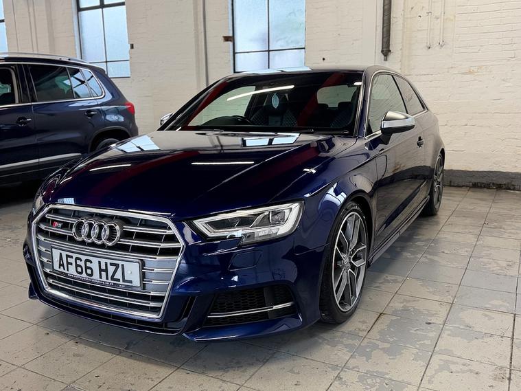 Cuffley Motor Company present this Audi S3 TFSI Quattro S-A finished in Estoril Blue Crystal Effect with Black diamond-quilted stitch leather sport seats. *The timing belt and water pump were replaced in 2023* This stylish car is powered by a 2.0L petrol engine and equipped with an automatic transmission, offering exceptional performance and efficiency for all driving needs. Features include 20" titanium diamond cut alloys, heated seats, rear parking sensors, sat nav, multi-function steering wheel and climate contol. The audio/visual system includes Carplay, Bluetooth, AUX, USB and DAB/FM/AM radio. This car comes with 2 keys, full service history and has 5 previous owners. All cars have a HPI check. We are a family run business established in 1979. Finance quotations are available via our website on dealer's website follow the finance options underneath each individual advert. Please contact Jamie on 01707512548 or 01707512548 for further information.