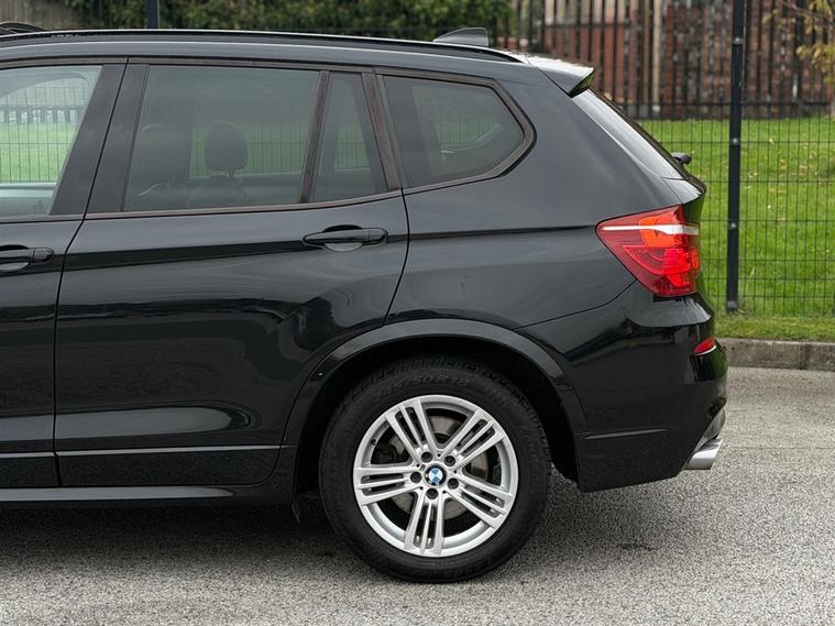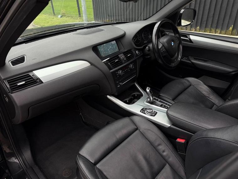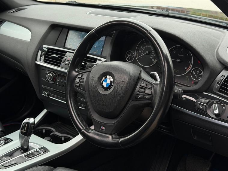This BMW X3 3.0 30d M Sport Auto xDrive Finished in Black and this vehicle comes with the following specification: 18in Alloy Wheels - Light M Star Spoke - 368M | Nevada Leather - Black | Panoramic Glass Sunroof | Media Package - BMW Professional | Visibility Package | Xenon Headlights | Navigation System - BMW Professional Media | Enhanced Bluetooth System | Powered - Bootlid | Heated Front Seats | Adaptive Headlights | DAB & Radio | Bluetooth Connectivity | Privacy Glass
