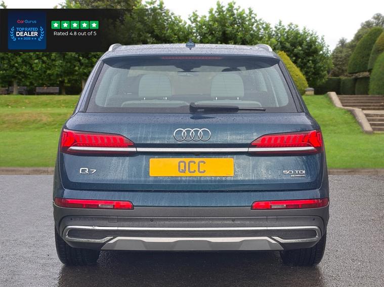 NATIONWIDE DELIVERY AVAILABLE! THIS 1 OWNER AUDI Q7 3.0 TDI V6 50 SPORT QUATTRO FINISHED IN GALAXY BLUE METALLIC WITH GREY LEATHER BENEFITS FROM THE FOLLOWING SPECIFICATION, 7 SEATS WITH 3RD ROW SEATING, 19" ALLOYS, TOUCH SCREEN WITH SAT NAV, REAR VIEW REVERSE CAMERA, AUDI DRIVE SELECT, AUDI VIRTUAL COCKPIT, SPORTS M/F/S/WHEEL, M/F/S/WHEEL WITH CRUISE CONTROL AND PADDLE SHIFT, ELECTRIC HEATED MEMORY SEATS WITH LUMBAR SUPPORT, ELECTRIC FOLDING EXTERIOR MIRRORS, FRONT AND REAR PARK DISTANCE CONTROL, DUAL ZONE AIR CON CLIMATE CONTROL, AUTOMATICALLY DIMMING REAR VIEW MIRROR, AUTOMATIC HEAD LIGHTS, BLUETOOTH PHONE PREP, APPLE CARPLAY, ANDROID AUTO, ROOF RAILS, POWER TAIL GATE/BOOT LID, CENTRE ARM REST, SEVEN, THIRD, 5+2, QUIRKS CAR COMPANY ARE VERY PROUD WINNERS OF RUNNER UP FOR AUTOTRADER RETAILER OF THE YEAR 2021, WINNERS OF AUTOTRADER HIGHLY RATED FOR OUR CUSTOMER SERVICE 2021/20, AND WINNERS OF CAR GURUS TOP RATED DEALER 2021/20/19. WE USE THIRD PARTY SOURCES TO OBTAIN STANDARD AND OPTIONAL FITTED FEATURES AND SPECIFICATIONS. WE CANNOT BE HELD LIABLE FOR ITS ACCURACY SO PLEASE VERIFY THESE DETAILS WHEN VIEWING THE VEHICLE PRIOR TO PURCHASE. YOU MUST PHYSICALLY CHECK THE SPECIFICATION OF THE VEHICLE ON SITE PRIOR TO PURCHASE.