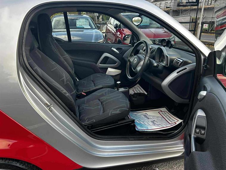 ++NON ULEZ COMPLIANT++ **2009 REG OF SP09 YWL++ SMALL AUTOMATIC, 1 Key, HPI clear, Finished in Silver/Red with Black/Grey cloth seats, Comes with 72, 000 miles, Supported by very good service history, Electric windows/mirrors, CD player, Air con, Air bags, ABS, Alarm, Central locking, PAS, All round this is a cracking little 1st car for someone. Cheap tax at 20 per year, great MPG return, Low insurance group 4P. This will come with a new MOT+SERVICE with us here at CTC upon purchase at screen price. Do not miss out on this cracking little SMART FORTWO 0.8 CDI TURBO PASSION COUPE SPEC, 3 DOOR, 5 SPEED AUTOMATIC CAR. IF YOU WOULD LIKE ANYMORE INFO ON THIS CAR THEN PLEASE CALL US ON 01291892385. ALSO CLAIM YOUR FREE 12 MONTHS AA BREAKDOWN COVER.