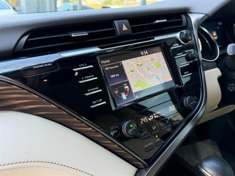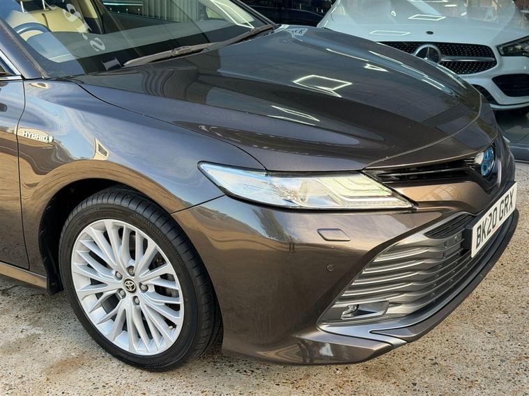 This 2020 Toyota Camry VVT-h Excel offers a refined driving experience with its efficient 2.5L petrol hybrid engine, meeting Euro 6 emissions standards. As an Excel trim model, it comes equipped with desirable features such as LED headlights for enhanced visibility, a Bluetooth hands free system for seamless connectivity, and a convenient wireless mobile phone charger. The smart entry and push button start system adds a touch of modern convenience, while the heated driver and front passenger seats ensure comfort in all conditions. The generous boot space in this Camry provides ample room for luggage or shopping, making it a practical choice for everyday use and longer journeys. The inclusion of these notable features, such as the advanced lighting and connectivity options, demonstrates how this particular Toyota Camry Excel is thoughtfully equipped to offer a superior experience compared to other vehicles in its class.