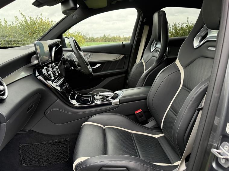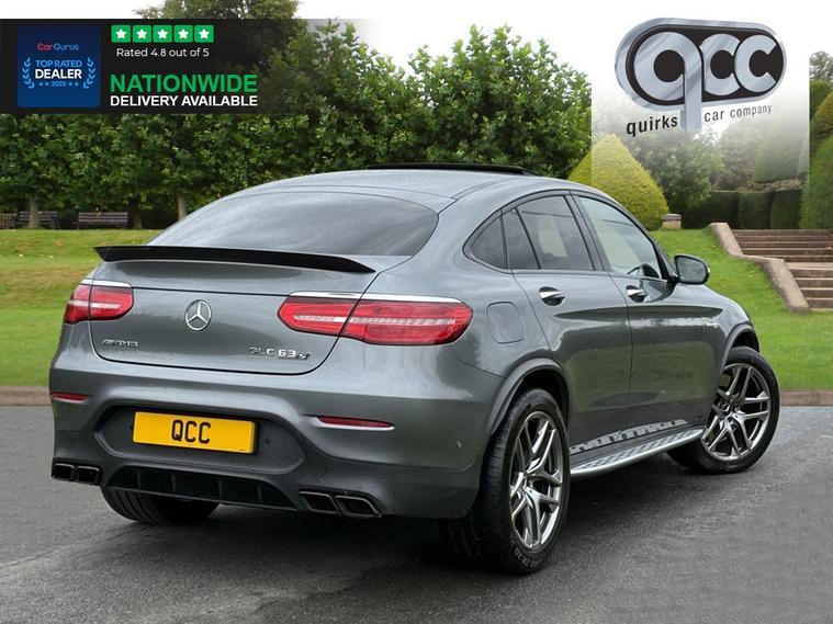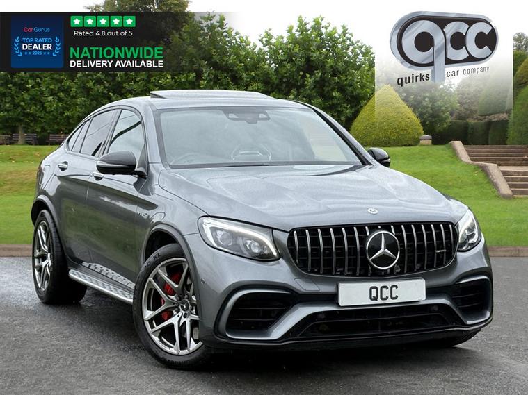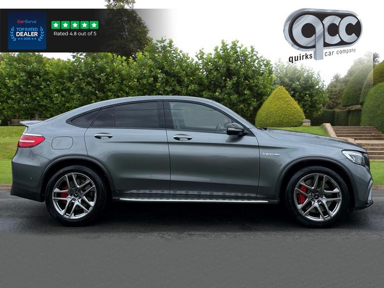 NATIONWIDE DELIVERY AVAILABLE! THIS MERCEDES GLC43 S 4.0 V8 BITURBO PREMIUM COUPE FINISHED IN SELENITE GREY WITH BLACK LEATHER BENEFITS FROM THE FOLLOWING SPECIFICATION, PREMUM PACKAGE, ELECTRIC GLASS SUNROOF WITH SUNBLIND, 20" ALLOYS, AMG SPOILER LIP, AMG NIGHT PACK, AMG DRIVERS PACK, DRIVING PACK, SWITCHABLE SPORTS EXHAUST, BURMESTER SOUND SYSTEM, DYNAMIC DRIVING MODES, PANAMERICANA FRONT GRILLE, RUNNING BOARDS, SAT NAV, REAR VIEW REVERSE CAMERA, 360 CAMERA, ACTIVE PARKING ASSIST, ACTIVE BLIND SPOT ASSIST, LANE KEEPING ASSIST, FULL MERCEDES SERVICE HISTORY, M/F/S/WHEEL WITH ADAPTIVE CRUISE CONTROL PLUS, PADDLE SHIFT AND VOICE CONTROL, ELECTRIC HEATED MEMORY AMG PERFORMANCE SEATS WITH LUMBAR SUPPORT, SILVER SEAT BELTS, BRUSHED ALUMINIUM AND PIANO BLACK INTERIOR TRIM, ELECTRIC STEERING COLUMN, ELECTRIC FOLDING EXTERIOR MIRRORS, FRONT AND REAR PARK DISTANCE CONTROL, DUAL ZONE AIR CON CLIMATE CONTROL, AUTOMATICALLY DIMMING REAR VIEW MIRROR, AUTOMATIC HEAD LIGHTS, AUTOMATIC HIGH BEAM CONTROL PLUS (IHC+), BLUETOOTH PHONE PREP, RED BRAKE CALIPERS, POWER TAIL GATE/BOOT LID, PRIVACY GLASS, ISOFIX POINTS, CENTRE ARM REST, QUIRKS CAR COMPANY ARE VERY PROUD WINNERS OF RUNNER UP FOR AUTOTRADER RETAILER OF THE YEAR 2021, WINNERS OF AUTOTRADER HIGHLY RATED FOR OUR CUSTOMER SERVICE 2021/20, AND WINNERS OF CAR GURUS TOP RATED DEALER 2021/20/19. WE USE THIRD PARTY SOURCES TO OBTAIN STANDARD AND OPTIONAL FITTED FEATURES AND SPECIFICATIONS. WE CANNOT BE HELD LIABLE FOR ITS ACCURACY SO PLEASE VERIFY THESE DETAILS WHEN VIEWING THE VEHICLE PRIOR TO PURCHASE. YOU MUST PHYSICALLY CHECK THE SPECIFICATION OF THE VEHICLE ON SITE PRIOR TO PURCHASE.