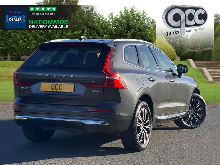 VAT QUALIFYING SO PRICE INCLUDES VAT! NATIONWIDE DELIVERY AVAILABLE! THIS 1 OWNER VOLVO XC60 2.5 MHEV INSCRIPTION FINISHED IN PLATINUM GREY WITH NAPPA SOFT BLACK LEATHER BENEFITS FROM THE FOLLOWING SPECIFICATION, ELECTRIC PANORAMIC GLASS SUNROOF WITH ELECTRIC BLIND, 19" ALLOYS, PREMIUM SOUND BY HARMAN KARDON, ORREFORS CRYSTAL GEAR LEVER, TOUCH SCREEN WITH SAT NAV, REAR VIEW REVERSE CAMERA, DRIVER ASSISTANCE WITH PILOT ASSIST AND ADAPTIVE CRUISE CONTROL, SPECIAL VALUE LOUNGE PACK, DIGITAL DASH, M/F/S/WHEEL WITH CRUISE CONTROL AND VOICE CONTROL, ELECTRIC HEATED AND COOLED MEMORY SEATS WITH LUMBAR SUPPORT, ELECTRIC FOLDING EXTERIOR MIRRORS, FRONT AND REAR PARK DISTANCE CONTROL, 4x ZONE AIR CON CLIMATE CONTROL WITH REAR AIR CON, AUTOMATICALLY DIMMING REAR VIEW MIRROR, AUTOMATIC HEAD LIGHTS, BLUETOOTH PHONE PREP, APPLE CARPLAY, ANDROID AUTO, POWER TAIL GATE/BOOT LID, ISOFIX POINTS, CENTRE ARM REST, PAN ROOF, QUIRKS CAR COMPANY ARE VERY PROUD WINNERS OF RUNNER UP FOR AUTOTRADER RETAILER OF THE YEAR 2021, WINNERS OF AUTOTRADER HIGHLY RATED FOR OUR CUSTOMER SERVICE 2021/20, AND WINNERS OF CAR GURUS TOP RATED DEALER 2021/20/19. WE USE THIRD PARTY SOURCES TO OBTAIN STANDARD AND OPTIONAL FITTED FEATURES AND SPECIFICATIONS. WE CANNOT BE HELD LIABLE FOR ITS ACCURACY SO PLEASE VERIFY THESE DETAILS WHEN VIEWING THE VEHICLE PRIOR TO PURCHASE. YOU MUST PHYSICALLY CHECK THE SPECIFICATION OF THE VEHICLE ON SITE PRIOR TO PURCHASE.