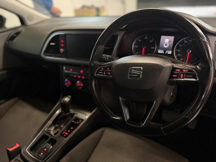 Cuffley Motor Company present this Seat Leon Sport Tourer finished in Black with Black cloth interior. This stylish car is powered by a 1.6L diesel engine and equipped with an automatic transmission, offering exceptional performance and efficiency for all driving needs. In 2024 this car had 900 worth of service complete, including the Timing belt and water pump. Features include 17" alloys, rear parking sensors, multi-function steering wheel and climate control. The audio/visual system includes Bluetooth, USB and FM/AM radio. This car comes with 1 key, full service history and has 3 previous owners. All cars have a HPI check. We are a family run business established in 1979. Finance quotations are available via our website on dealer's website follow the finance options underneath each individual advert. Please contact Jamie on 01707512548 or 01707512548 for further information.