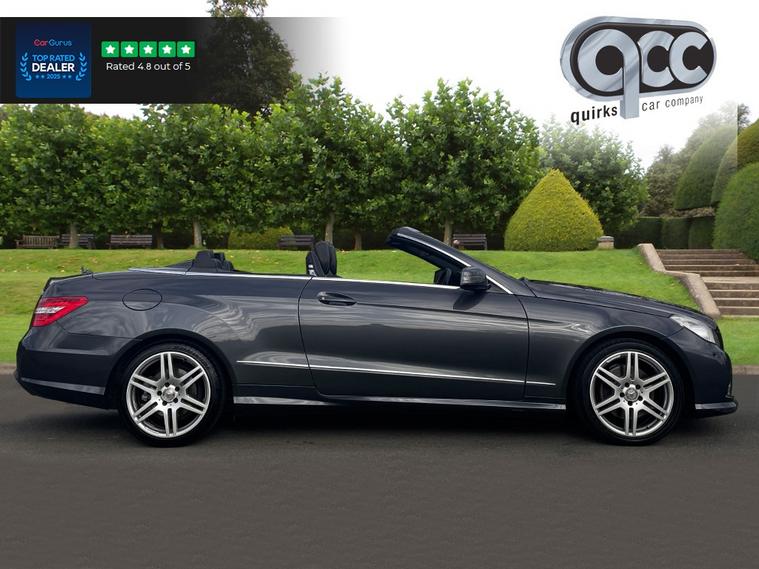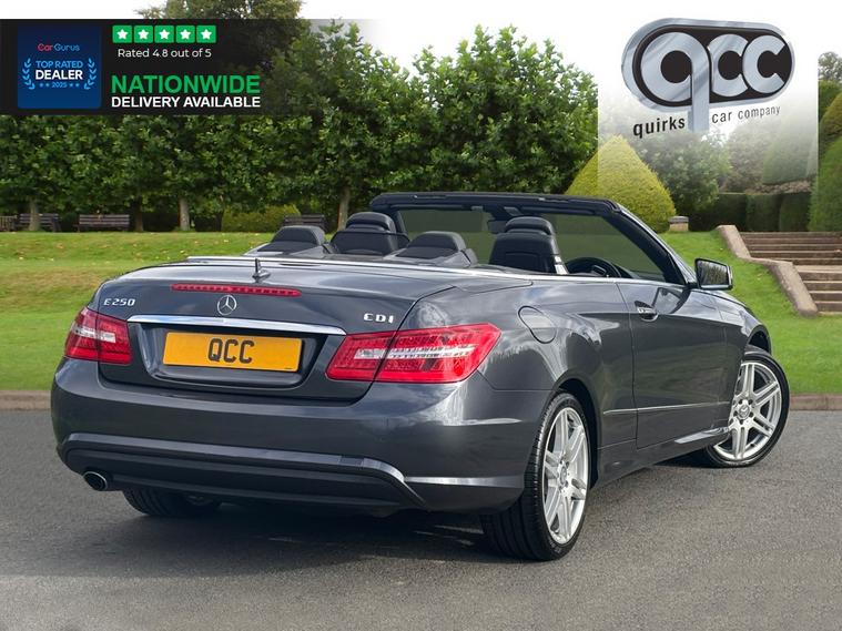 NATIONWIDE DELIVERY AVAILABLE! THIS MERCEDES E250d 2.1 CDI BLUE EFFICIENCY SPORT CABRIOLET FINISHED IN TENORITE GREY METALLIC WITH BLACK LEATHER BENEFITS FROM THE FOLLOWING SPECIFICATION, BLACK POWER HOOD/SOFT TOP, 18" ALLOYS, SAT NAV, SPORT M/F/S/WHEEL WITH CRUISE CONTROL, PADDLE SHIFT AND VOICE CONTROL, HEATED SEATS WITH LUMBAR SUPPORT, ELECTRIC FOLDING EXTERIOR MIRRORS, FRONT AND REAR PARK DISTANCE CONTROL, DUAL ZONE AIR CON CLIMATE CONTROL, AUTOMATIC HEAD LIGHTS, CENTRE ARM REST, QUIRKS CAR COMPANY ARE VERY PROUD WINNERS OF RUNNER UP FOR AUTOTRADER RETAILER OF THE YEAR 2021, WINNERS OF AUTOTRADER HIGHLY RATED FOR OUR CUSTOMER SERVICE 2021/20, AND WINNERS OF CAR GURUS TOP RATED DEALER 2021/20/19. WE USE THIRD PARTY SOURCES TO OBTAIN STANDARD AND OPTIONAL FITTED FEATURES AND SPECIFICATIONS. WE CANNOT BE HELD LIABLE FOR ITS ACCURACY SO PLEASE VERIFY THESE DETAILS WHEN VIEWING THE VEHICLE PRIOR TO PURCHASE. YOU MUST PHYSICALLY CHECK THE SPECIFICATION OF THE VEHICLE ON SITE PRIOR TO PURCHASE.