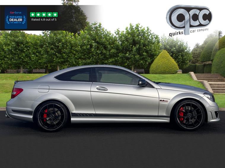 NATIONWIDE DELIVERY AVAILABLE! THIS REMARKABLY LOW MILEAGE, SPECIAL VERSION EDITION 507 MERCEDES C63 V8 AMG IS POWERED BY A 6.3 LITRE PETROL ENGINE AND FINISHED IN IRIDIUM SILVER METALLIC WITH DESIGNO BLACK LEATHER. THIS PERFORMANCE VEHICLE IS EQUIPPED WITH UPGRADED ENGINE OUTPUT, FORGED PISTONS, LIGHTWEIGHT CRANKSHAFT, HIGH PERFORMANCE BRAKE DISCS, EXCLUSIVE 19" AMG FORGED LIGHT ALLOY WHEELS, ALUMINIUM VENTED BONNET AND GLOSS BLACK TRIM. OTHER SPECIFICATION INCLUDES ELECTRIC PANORAMIC GLASS SUNROOF WITH ELECTRIC BLIND, HARMAN KARDON SOUND SYSTEM, AMG DRIVERS PACK, SAT NAV, REAR VIEW REVERSE CAMERA, DRIVING MODES, DESIGNO EXCLUSIVE PACK, FLAT BOTTOMED M/F/S/WHEEL WITH CRUISE CONTROL, PADDLE SHIFT AND VOICE CONTROL, ELECTRIC HEATED MEMORY SEATS WITH LUMBAR SUPPORT, CARBON FIBRE INTERIOR TRIM, ELECTRIC STEERING COLUMN, ELECTRIC FOLDING EXTERIOR MIRRORS, DUAL ZONE AIR CON CLIMATE CONTROL, FRONT AND REAR PARK DISTANCE CONTROL, RED BRAKE CALIPERS, AUTOMATICALLY DIMMING REAR VIEW MIRROR, AUTOMATIC HEAD LIGHTS, BLUETOOTH PHONE PREP, ISOFIX POINTS, CENTRE ARM REST, PAN ROOF, QUIRKS CAR COMPANY ARE VERY PROUD WINNERS OF RUNNER UP FOR AUTOTRADER RETAILER OF THE YEAR 2021, WINNERS OF AUTOTRADER HIGHLY RATED FOR OUR CUSTOMER SERVICE 2021/20, AND WINNERS OF CAR GURUS TOP RATED DEALER 2021/20/19. WE USE THIRD PARTY SOURCES TO OBTAIN STANDARD AND OPTIONAL FITTED FEATURES AND SPECIFICATIONS. WE CANNOT BE HELD LIABLE FOR ITS ACCURACY SO PLEASE VERIFY THESE DETAILS WHEN VIEWING THE VEHICLE PRIOR TO PURCHASE. YOU MUST PHYSICALLY CHECK THE SPECIFICATION OF THE VEHICLE ON SITE PRIOR TO PURCHASE.