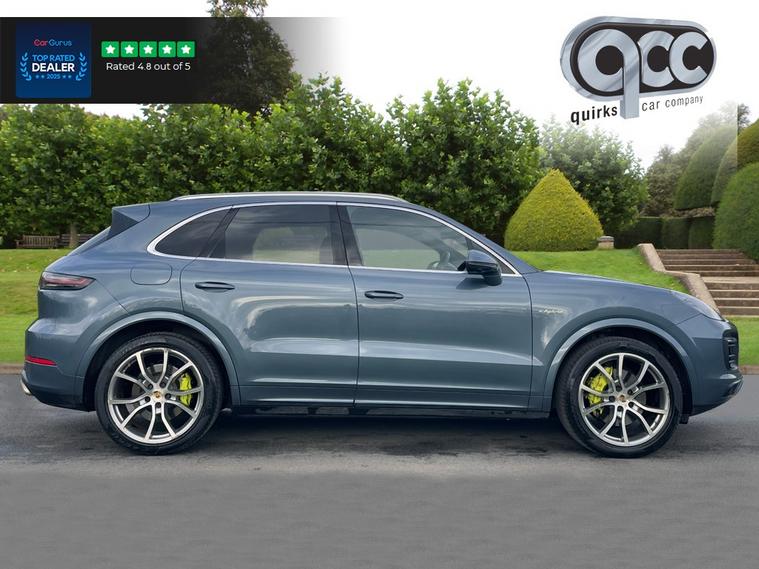 NATIONWIDE DELIVERY AVAILABLE! THIS 1 OWNER PORSCHE CAYENNE 3.0 V6 E-HYBRID 14.1kWh TIPTRONIC S FINISHED IN BISCAY BLUE WITH TAN LEATHER BENEFITS FROM THE FOLLOWING SPECIFICATION, 1 OWNER, ELECTRIC PANORAMIC GLASS SUNROOF WITH ELECTRIC BLIND, 21" ALLOYS, REAR AXLE STEERING, PASM (PORSCHE ACTIVE SUSPENSION MANAGEMENT), DRIVING MODES SELECTION, INSTRUMENT DIALS IN BLACK, SPORT CHONO PACKAGE PLUS, BOSE SOUND SYSTEM, TOUCH SCREEN WITH SAT NAV, REAR VIEW REVERSE CAMERA, 360 CAMERA, HEATED 3 SPOKE M/F/S/WHEEL WITH CRUISE CONTROL, PADDLE SHIFT AND VOICE CONTROL, 12 WAY ELECTRIC HEATED AND COOLED MEMORY SEATS WITH LUMBAR SUPPORT, PIANO BLACK INTERIOR TRIM, ELECTRIC FOLDING EXTERIOR MIRRORS, FRONT AND REAR PARK DISTANCE CONTROL, ELECTRIC STEERING COLUMN, AUTOMATICALLY DIMMING REAR VIEW MIRROR, AUTOMATIC HEAD LIGHTS, PDLS+ INCLUDING MATRIX BEAM, BLUETOOTH PHONE PREP, POWER TAIL GATE/BOOT LID WITH VIRTUAL PEDAL, PRIVACY GLASS, ROOF RAILS, CENTRE ARM REST, PAN ROOF, QUIRKS CAR COMPANY ARE VERY PROUD WINNERS OF RUNNER UP FOR AUTOTRADER RETAILER OF THE YEAR 2021, WINNERS OF AUTOTRADER HIGHLY RATED FOR OUR CUSTOMER SERVICE 2021/20, AND WINNERS OF CAR GURUS TOP RATED DEALER 2021/20/19. WE USE THIRD PARTY SOURCES TO OBTAIN STANDARD AND OPTIONAL FITTED FEATURES AND SPECIFICATIONS. WE CANNOT BE HELD LIABLE FOR ITS ACCURACY SO PLEASE VERIFY THESE DETAILS WHEN VIEWING THE VEHICLE PRIOR TO PURCHASE. YOU MUST PHYSICALLY CHECK THE SPECIFICATION OF THE VEHICLE ON SITE PRIOR TO PURCHASE.