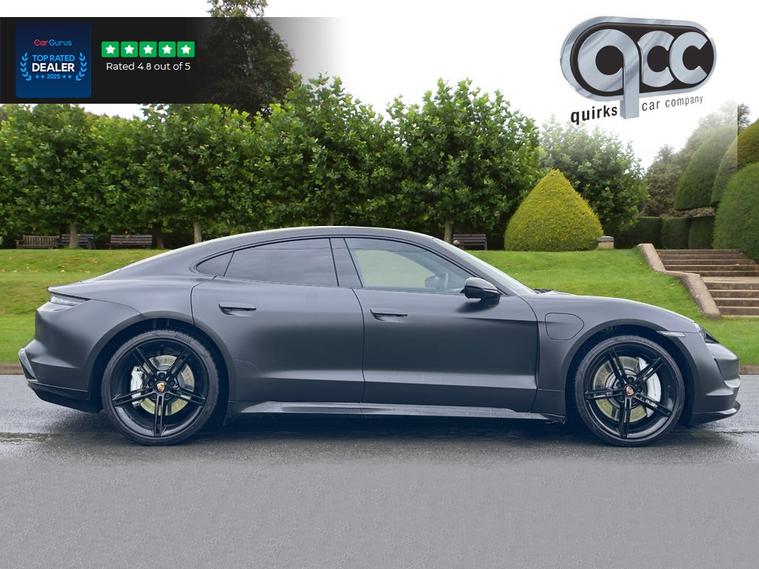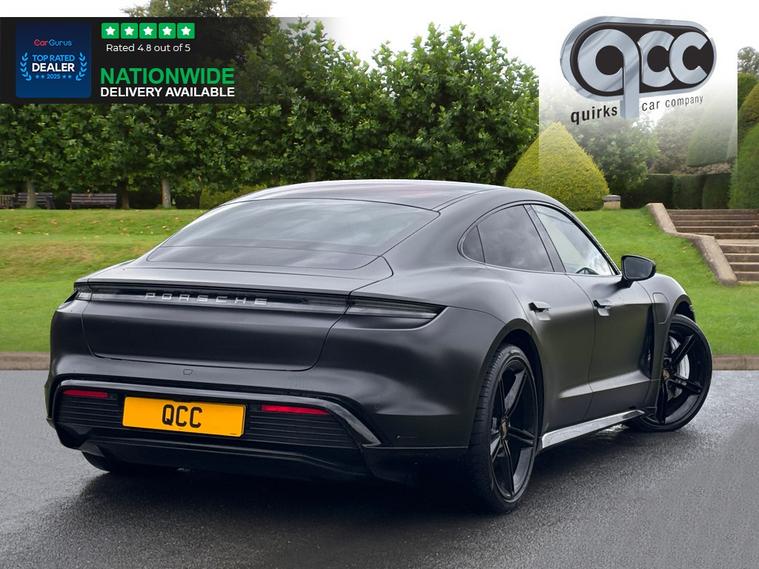 NATIONWIDE DELIVERY AVAILABLE! THIS PORSCHE TAYCAN PERFORMANCE PLUS 93.4kWh 4S HAS BEEN PROFESSIONALLY WRAPPED IN SATIN BLACK AND FEATURES TWO TONE LEATHER, BENEFITS FROM THE FOLLOWING SPECIFICATION, PANORAMIC GLASS ROOF, 21" MISSION E DESIGN ALLOYS, PSCB (PORSCHE SURFACE COATED BRAKES), PASSENGER DISPLAY, ELECTRIC SPORT SOUND, PERFORMANCE BATTERY PLUS, 5 SEATS WITH 4+1 CONFIGURATION, SIDE WINDOW TRIMS IN BLACK HIGH GLOSS, TOUCH SCREEN WITH SAT NAV, REAR VIEW REVERSE CAMERA, DIGITAL DASH, M/F/S/WHEEL WITH CRUISE CONTROL AND VOICE CONTROL, ELECTRIC HEATED MEMORY SEATS, ELECTRIC FOLDING EXTERIOR MIRRORS, FRONT AND REAR PARK DISTANCE CONTROL, DUAL ZONE AIR CON CLIMATE CONTROL, AUTOMATIC HEAD LIGHTS, BLUETOOTH PHONE PREP, APPLE CARPLAY, ANDROID AUTO, PRIVACY GLASS, ISOFIX POINTS, CENTRE ARM REST, PAN ROOF, QUIRKS CAR COMPANY ARE VERY PROUD WINNERS OF RUNNER UP FOR AUTOTRADER RETAILER OF THE YEAR 2021, WINNERS OF AUTOTRADER HIGHLY RATED FOR OUR CUSTOMER SERVICE 2021/20, AND WINNERS OF CAR GURUS TOP RATED DEALER 2021/20/19. WE USE THIRD PARTY SOURCES TO OBTAIN STANDARD AND OPTIONAL FITTED FEATURES AND SPECIFICATIONS. WE CANNOT BE HELD LIABLE FOR ITS ACCURACY SO PLEASE VERIFY THESE DETAILS WHEN VIEWING THE VEHICLE PRIOR TO PURCHASE. YOU MUST PHYSICALLY CHECK THE SPECIFICATION OF THE VEHICLE ON SITE PRIOR TO PURCHASE.