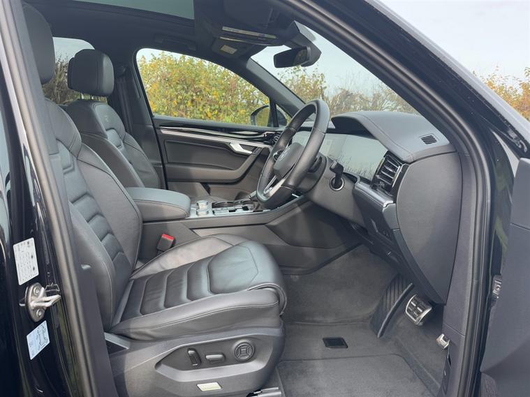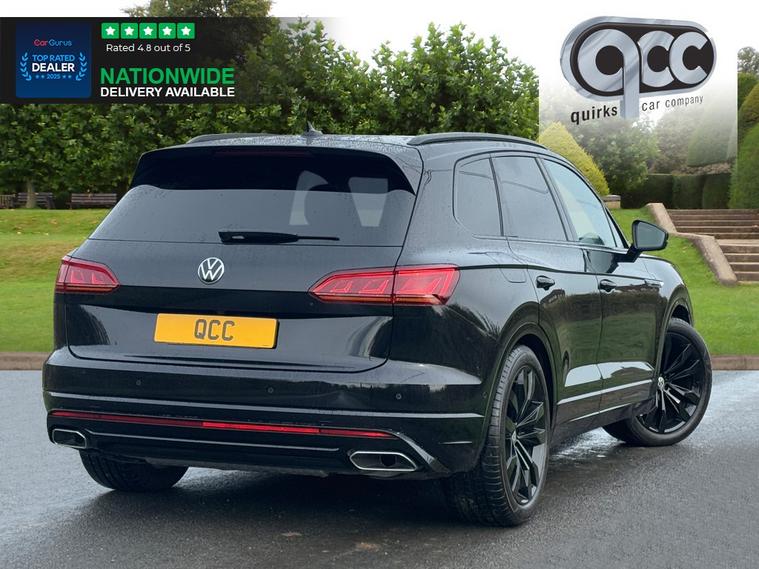 NATIONWIDE DELIVERY AVAILABLE! THIS VOLKSWAGEN TOURAEG 3.0 TDI V6 BLACK EDITION 4MOTION FINISHED IN DEEP BLACK PEARL WITH BLACK LEATHER BENEFITS FROM THE FOLLOWING SPECIFICATION, ELECTRIC PANORAMIC GLASS SUNROOF WITH ELECTRIC BLIND, 21" SUZUKA ALLOYS, COMFORT PACKAGE, PARK ASSIST PACK, DRIVING PROFILE SELECTION, AIR SUSPENSION WITH SELF LEVELLING, INNOVISION COCKPIT, PREMIUM SAT NAV SYSTEM, REAR VIEW REVERSE CAMERA, 360 CAMERA, HEATED SPORTS M/F/S/WHEEL WITH ADAPTIVE CRUISE CONTROL, PADDLE SHIFT AND VOICE CONTROL, ELECTRIC HEATED MEMORY COMFORT SEATS WITH LUMBAR SUPPORT, FRONT AND REAR PARK DISTANCE CONTROL, ELECTRIC FOLDING EXTERIOR MIRRORS, 4x ZONE AIR CON CLIMATE CONTROL WITH REAR AIR CON, AUTOMATICALLY DIMMING REAR VIEW MIRROR, AUTOMATIC HEAD LIGHTS, BLUETOOTH PHONE PREP, APPLE CARPLAY, ANDROID AUTO, ROOF RAILS, POWER TAIL GATE/BOOT LID, PRIVACY GLASS, CENTRE ARM REST, PAN ROOF, QUIRKS CAR COMPANY ARE VERY PROUD WINNERS OF RUNNER UP FOR AUTOTRADER RETAILER OF THE YEAR 2021, WINNERS OF AUTOTRADER HIGHLY RATED FOR OUR CUSTOMER SERVICE 2021/20, AND WINNERS OF CAR GURUS TOP RATED DEALER 2021/20/19. WE USE THIRD PARTY SOURCES TO OBTAIN STANDARD AND OPTIONAL FITTED FEATURES AND SPECIFICATIONS. WE CANNOT BE HELD LIABLE FOR ITS ACCURACY SO PLEASE VERIFY THESE DETAILS WHEN VIEWING THE VEHICLE PRIOR TO PURCHASE. YOU MUST PHYSICALLY CHECK THE SPECIFICATION OF THE VEHICLE ON SITE PRIOR TO PURCHASE.