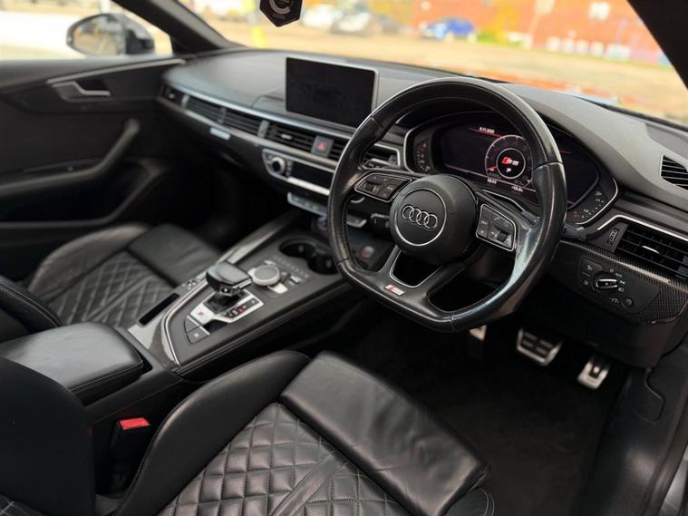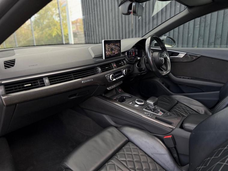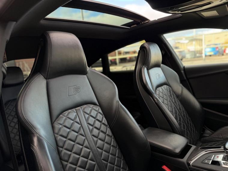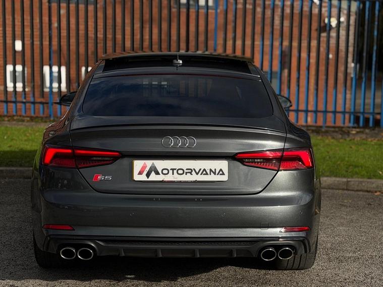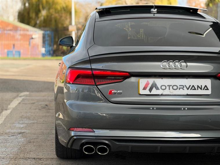 This Audi S5 3.0 TFSI V6 Sportback Finished in Metallic Grey and this vehicle comes with the following specification: 19in Alloy Wheels - 5-Arm Turbine Desigin | Matrix LED Headlights with LED Rear Lights | Carbon - Inlay | Flat-Bottomed 3-Spoke Leather | Audi Virtual Cockpit | Light & Vision Pack | Multi Colour Ambient Lighting | Privacy Glass | Pranoramic Glass Sunroof | Navigation | Bluetooth Audio & Connectivity | DAB & Radio | Apple CarPlay | Privacy Glass | 2 Keys | FSH