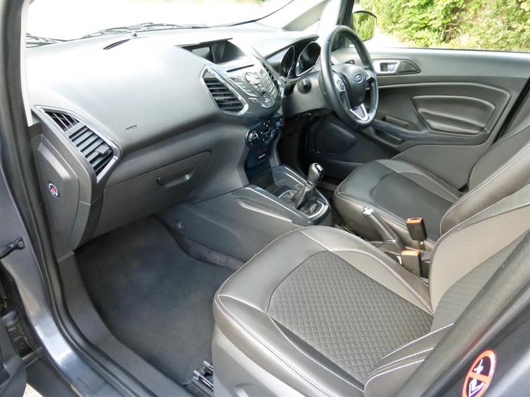 Ford EcoSport Titanium, 2018 18, Sea Grey Metallic, 41000 Miles, Full Service History, 1 Owner from New, Remote Central Locking, Electric Windows, Electric Mirrors, Half Leather, Heated Seats, Cruise Control, Air Conditioning, Climate Control, Bluetooth, DAB Radio, USB + AUX, Alloy Wheels, Park Sensors, A Truly Exceptional car Throughout. We have signed up to the AA Dealer Promise, which means you can trust us to ensure that each car comes with a free history check, is professionally prepared to the highest standard, fully inspected before handover. The screen price includes :- 6 Month AA warranty, 12 month *AA breakdown cover, No administration fees. 12/24 Month Extended Warranties available, please ask for a quote *Activate online