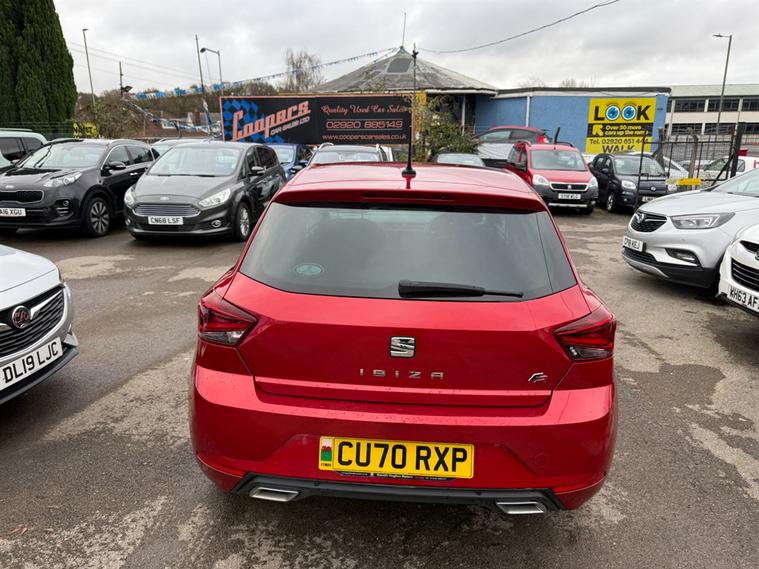 Seat Ibiza 1.0 Fr in metallic red. A fantastic example here, in great condition both inside and out, drives as good as it looks too. This stylish hatchback combines practicality with a host of premium features, including Apple Car Play/Android Auto, Sat-Nav, Bluetooth Hands Free, Bluetooth Audio Streaming, DAB Radio, Cruise Control, USB, A/C, Alloy Wheels etc. Contact us to book a test drive at Coopers Car Sales in Caerphilly, Glamorgan, or call us now at 02921223506 to arrange a viewing.