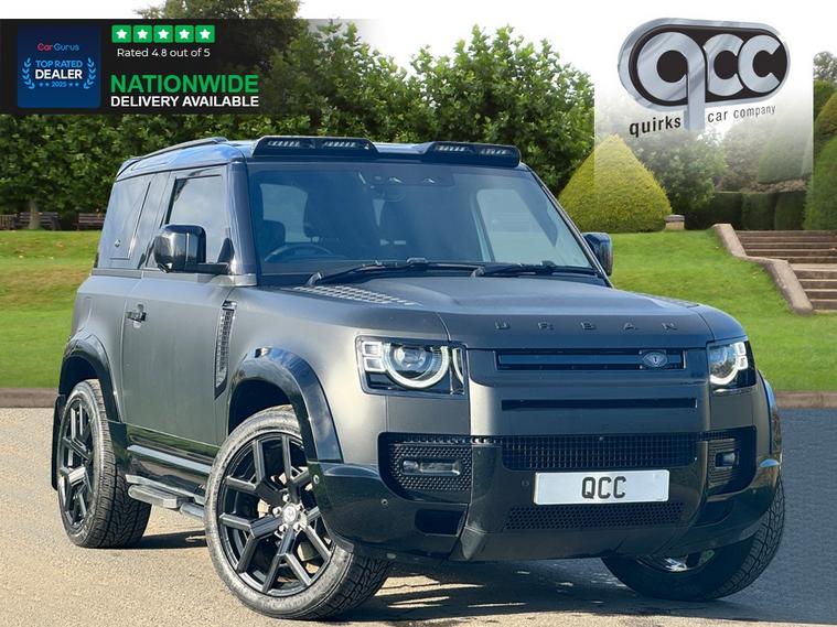 NATIONWIDE DELIVERY AVAILABLE! THIS LAND ROVER DEFENDER 90 3.0 D200 S BENEFITS FROM A FANTASTIC SPECIFICATION, PROFESSIONALLY WRAPPED IN SATIN BLACK, MODIFIED/CONVERTED BY URBAN AUTOMOTIVE, 22" URBAN AUTOMOTIVE ALLOYS, URBAN AUTOMOTIVE REAR SPOILER, URBAN AUTOMOTIVE ROOF LED LIGHT BAR, URBAN BRANDING PACK, URBAN SPARE WHEEL COVER, SIDE STEPS, BLACK PACK, 10" INFOTAINMENT TOUCH SCREEN WITH SAT NAV, REAR VIEW REVERSE CAMERA, HEATED SEATS WITH LUMBAR SUPPORT, HEATED FRONT WIND SCREEN, DUAL ZONE AIR CON CLIMATE CONTROL, AUTOMATIC HEAD LIGHTS, BLUETOOTH PHONE PREP, APPLE CARPLAY, ANDROID AUTO, ISOFIX POINTS, PRIVACY GLASS, CENTRE ARM REST, BODYKIT, BODYSTYLING, QUIRKS CAR COMPANY ARE VERY PROUD WINNERS OF RUNNER UP FOR AUTOTRADER RETAILER OF THE YEAR 2021, WINNERS OF AUTOTRADER HIGHLY RATED FOR OUR CUSTOMER SERVICE 2021/20, AND WINNERS OF CAR GURUS TOP RATED DEALER 2021/20/19. WE USE THIRD PARTY SOURCES TO OBTAIN STANDARD AND OPTIONAL FITTED FEATURES AND SPECIFICATIONS. WE CANNOT BE HELD LIABLE FOR ITS ACCURACY SO PLEASE VERIFY THESE DETAILS WHEN VIEWING THE VEHICLE PRIOR TO PURCHASE. YOU MUST PHYSICALLY CHECK THE SPECIFICATION OF THE VEHICLE ON SITE PRIOR TO PURCHASE