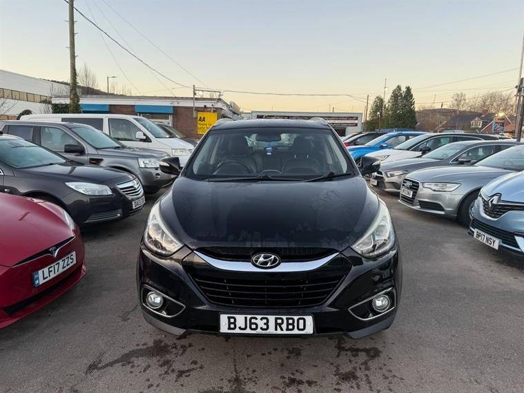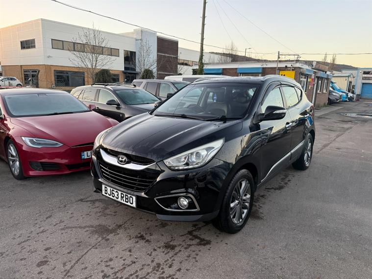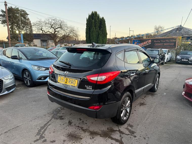 Hyundai ix35 1.7 CRDi SE in metallic black. This 2013 model boasts a robust 1.7L diesel engine, delivering impressive performance and fuel efficiency with a combined consumption of 53mpg, making it an excellent choice for both city driving and longer journeys. Huge spec too including 1/2 Leather Upholstery, Heated Front & Rear Seats, Cruise Control, Dual Zone Climate Control, Sat-Nav, Bluetooth Hands Free, Bluetooth Audio Streaming, Parking Sensors, A/C, Alloy Wheels, USB etc. Don't miss out on this fantastic opportunity to own a Hyundai ix35. Contact us to book a test drive today, or call 02921223506.