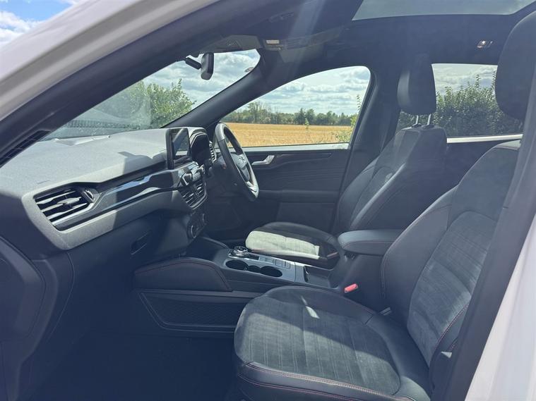 NATIONWIDE DELIVERY AVAILABLE! THIS 1 OWNER FORD KUGA 2.0 ECOBLUE ST-LINE X WITH BLACK SALERNO LEATHER AND ALCANTARA WITH RED STITCHING BENEFITS FROM THE FOLLOWING SPECIFICATION, ELECTRIC PANORAMIC GLASS SUNROOF WITH ELECTRIC BLIND, 19" ALLOYS, TOUCH SCREEN WITH SAT NAV, REAR VIEW REVERSE CAMERA, DIGITAL DASH, HEATED M/F/S/WHEEL WITH CRUISE CONTROL, PADDLE SHIFT AND VOICE CONTROL, ELECTRIC HEATED SEATS WITH LUMBAR SUPPORT, HEATED REAR SEATS, ELECTRIC FOLDING EXTERIOR MIRRORS, FRONT AND REAR PARK DISTANCE CONTROL, HEATED FRONT WIND SCREEN, AUTOMATICALLY DIMMING REAR VIEW MIRROR, AUTOMATIC HEAD LIGHTS, BLUETOOTH PHONE PREP, APPLE CARPLAY, ANDROID AUTO, PRIVACY GLASS, ROOF RAILS, POWER TAIL GATE/BOOT LID, RED BRAKE CALIPERS, CENTRE ARM REST, PAN ROOF, QUIRKS CAR COMPANY ARE VERY PROUD WINNERS OF RUNNER UP FOR AUTOTRADER RETAILER OF THE YEAR 2021, WINNERS OF AUTOTRADER HIGHLY RATED FOR OUR CUSTOMER SERVICE 2021/20, AND WINNERS OF CAR GURUS TOP RATED DEALER 2021/20/19. WE USE THIRD PARTY SOURCES TO OBTAIN STANDARD AND OPTIONAL FITTED FEATURES AND SPECIFICATIONS. WE CANNOT BE HELD LIABLE FOR ITS ACCURACY SO PLEASE VERIFY THESE DETAILS WHEN VIEWING THE VEHICLE PRIOR TO PURCHASE. YOU MUST PHYSICALLY CHECK THE SPECIFICATION OF THE VEHICLE ON SITE PRIOR TO PURCHASE.