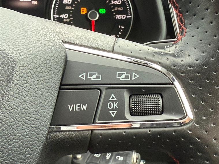 - Steering Wheel - Flat-Bottomed Perforated Leather with Red Stitching and FR Logo