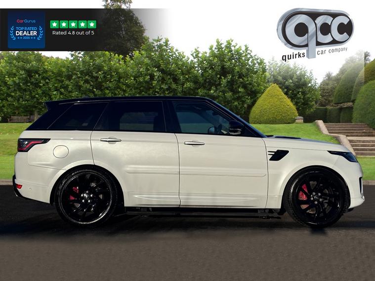 NATIONWIDE DELIVERY AVAILABLE! THIS 1 OWNER LAND ROVER RANGE ROVER SPORT 2.0 P400E 13.1kWh AUTOBIOGRAPHY DYNAMIC FINISHED IN SVO PREMIUM PALETTE MERIBEL WHITE WITH VINTAGE TAN AND BLACK LEATHER BENEFITS FROM THE FOLLOWING SPECIFICATION, ELECTRIC PANORAMIC GLASS ROOF WITH ELECTRIC BLIND, 21" ALLOYS, MERIDIAN SOUND SYSTEM, ELECTRICALLY DEPLOYABLE SIDE STEPS, BLACK PACK, FRIDGE/COOL BOX, TOUCH SCREEN WITH SAT NAV, REAR VIEW REVERSE CAMERA, 360 CAMERA, HEATED M/F/S/WHEEL WITH CRUISE CONTROL, PADDLE SHIFT AND VOICE CONTROL, 22 WAY ELECTRIC HEATED AND COOLED MEMORY SEATS WITH LUMBAR SUPPORT, HEATED REAR SEATS, WINGED HEAD RESTS, ALCANTARA HEAD LINING, ELECTRIC STEERING COLUMN, ELECTRIC FOLDING EXTERIOR MIRRORS, 4x ZONE AIR CON CLIMATE CONTROL WITH REAR AIR CON, HEATED FRONT WIND SCREEN, AUTOMATICALLY DIMMING REAR VIEW MIRROR, AUTOMATIC HEAD LIGHTS, AMBIENT LIGHTING, BLUETOOTH PHONE PREP, APPLE CARPLAY, ANDROID AUTO, PRIVACY GLASS, ISOFIX POINTS, POWER TAIL GATE/BOOT LID, CENTRE ARM REST, PAN ROOF, QUIRKS CAR COMPANY ARE VERY PROUD WINNERS OF RUNNER UP FOR AUTOTRADER RETAILER OF THE YEAR 2021, WINNERS OF AUTOTRADER HIGHLY RATED FOR OUR CUSTOMER SERVICE 2021/20, AND WINNERS OF CAR GURUS TOP RATED DEALER 2021/20/19. WE USE THIRD PARTY SOURCES TO OBTAIN STANDARD AND OPTIONAL FITTED FEATURES AND SPECIFICATIONS. WE CANNOT BE HELD LIABLE FOR ITS ACCURACY SO PLEASE VERIFY THESE DETAILS WHEN VIEWING THE VEHICLE PRIOR TO PURCHASE. YOU MUST PHYSICALLY CHECK THE SPECIFICATION OF THE VEHICLE ON SITE PRIOR TO PURCHASE.