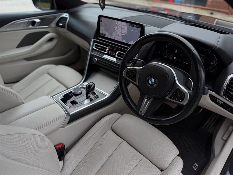 This BMW 8 Series Gran Coupe 3.0 840i Finished in Grey and this vehicle comes with the following specification: 20in Alloy Wheels - M Double Spoke Style 894 | BMW Individual Extended Merino Leather - Ivory White | Alcantara Headlining | M Sport Pro Pack | Comfort Plus Package | Heated Steering | Ventilated Front Seats | Soft-Close Doors | Rear Blinds | Heated Rear Seats | Adaptive M Suspension | Ambient Lights |