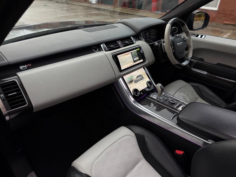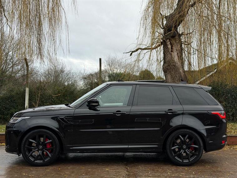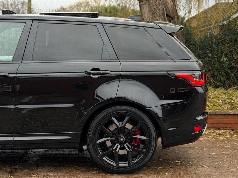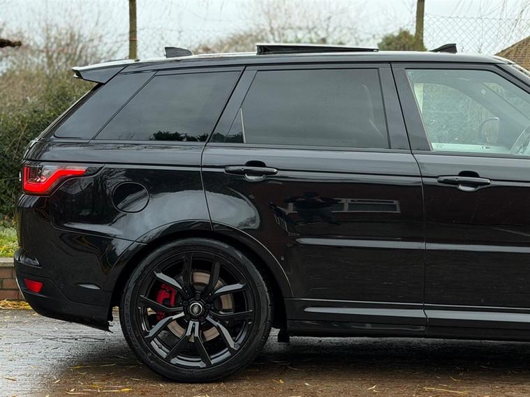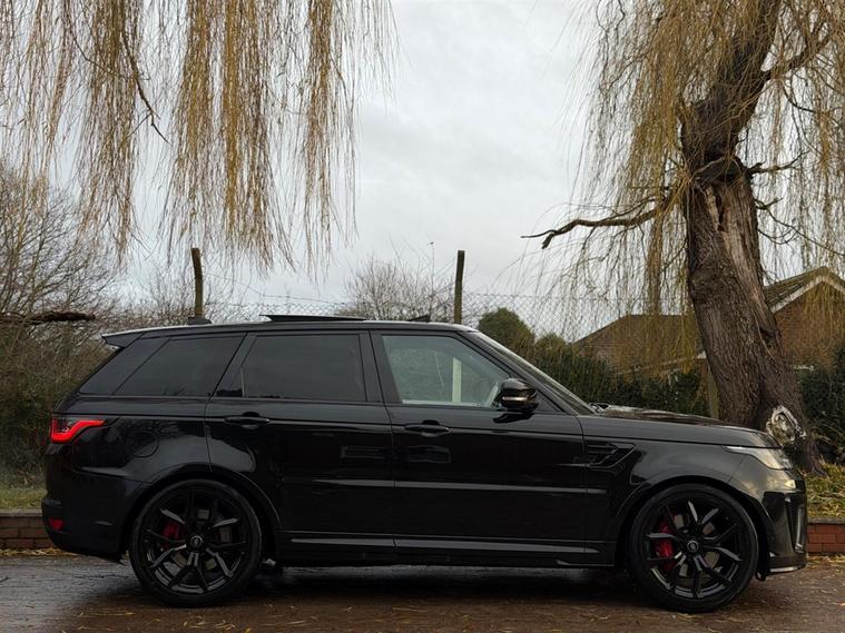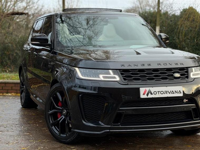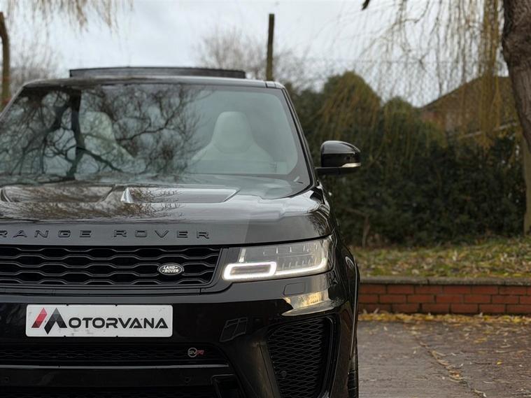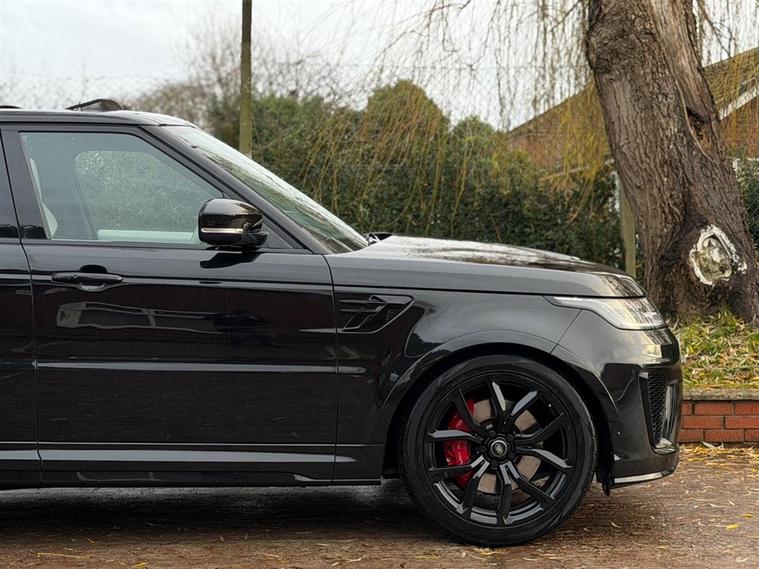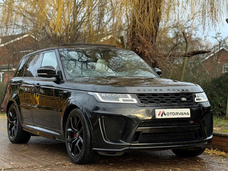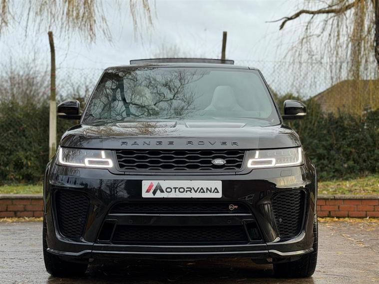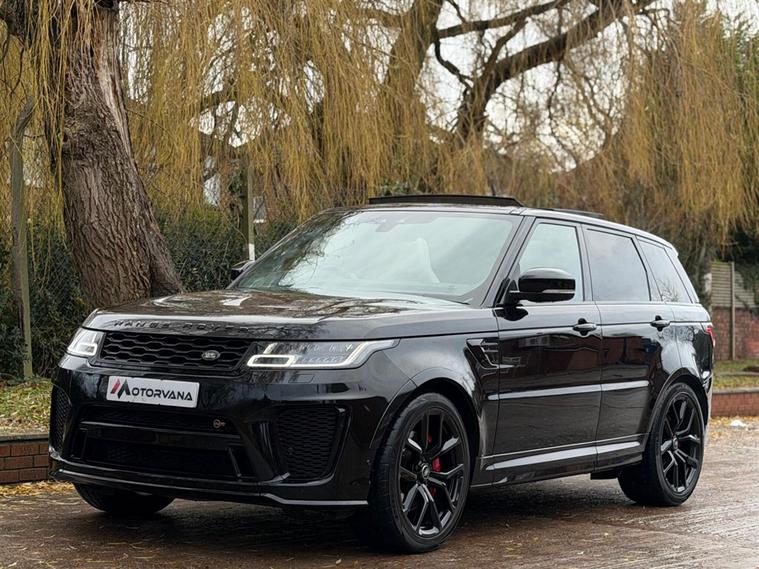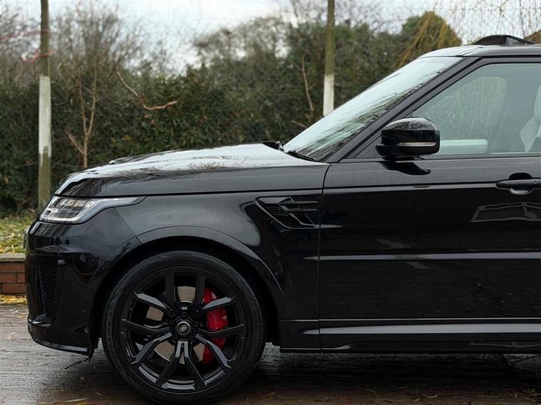 This Range Rover Sport 5.0 P575 V8 SVR Finished in Santorini Black and this vehicle comes with the following specification: 22in Alloy Wheels - 5 Split Spoke Style 5083 - Gloss Black |Perforated Windsor Ebony-cirrus Leather | SVR Carbon Fibre Exterior Pack With Exposed Carbon Fibre Bonnet | Sliding Panoramic Roof | Extended Carbon Fibre Trim Finished | Head-up Display | Meridian Signature Sound System |Pixer-Laser LED Headlights | Apple Car Play | Android Auto | Bluetooth Audio | Navigation | Bluetooth Audio | 2 Keys | Full Land Rover Service History | Reverse Camera | Heated Steering | Lane Assit | Adaptive Cruise Control | Soft Close Doors | Ghost Immobiser Fitted