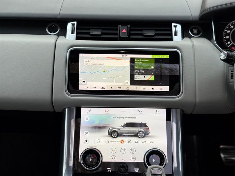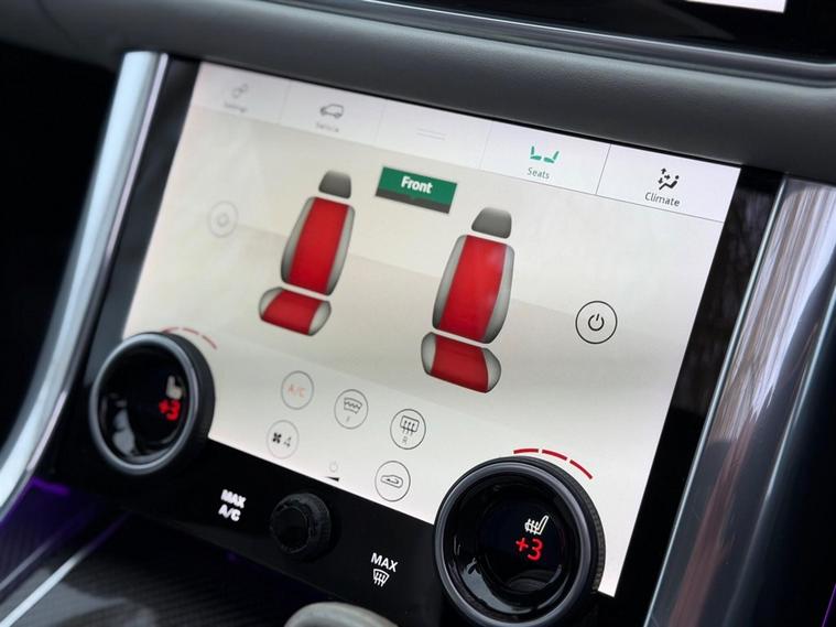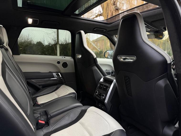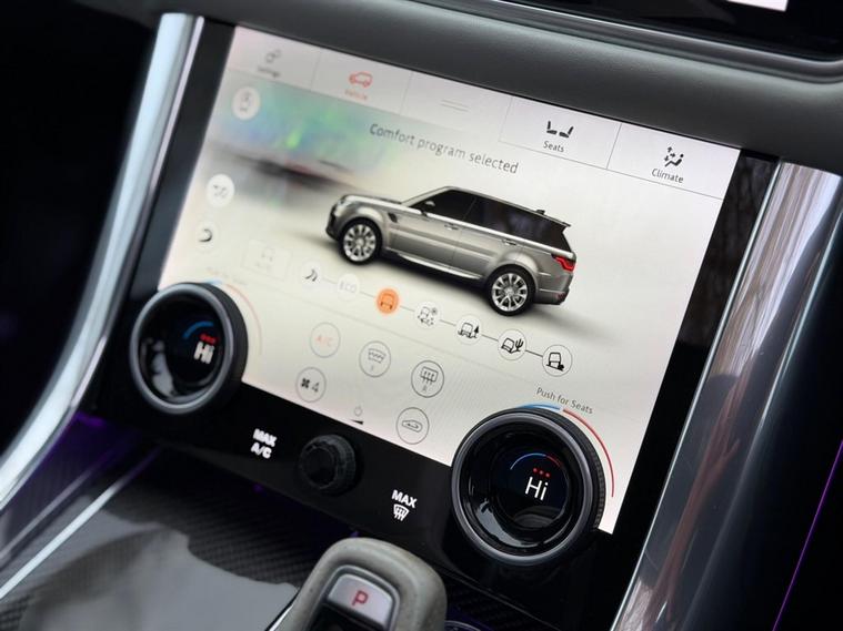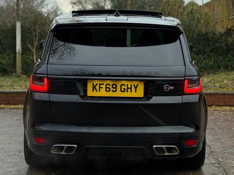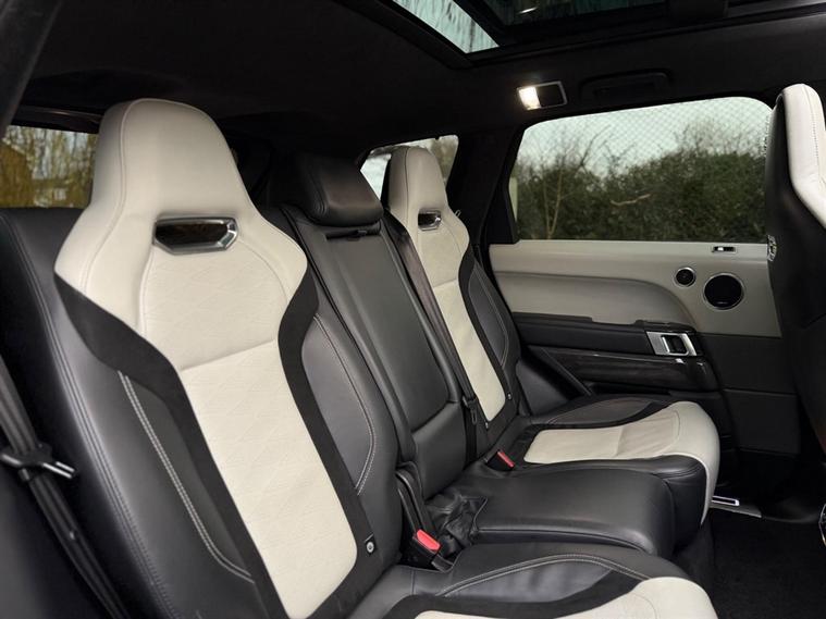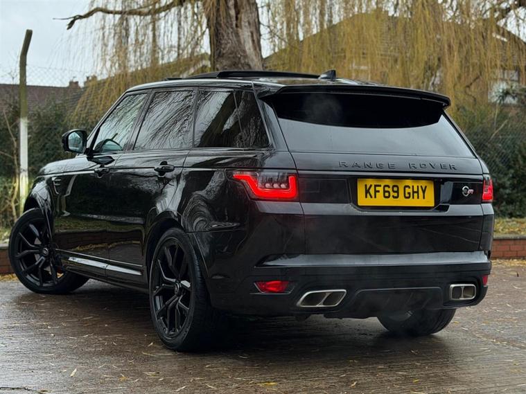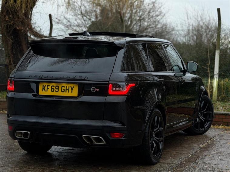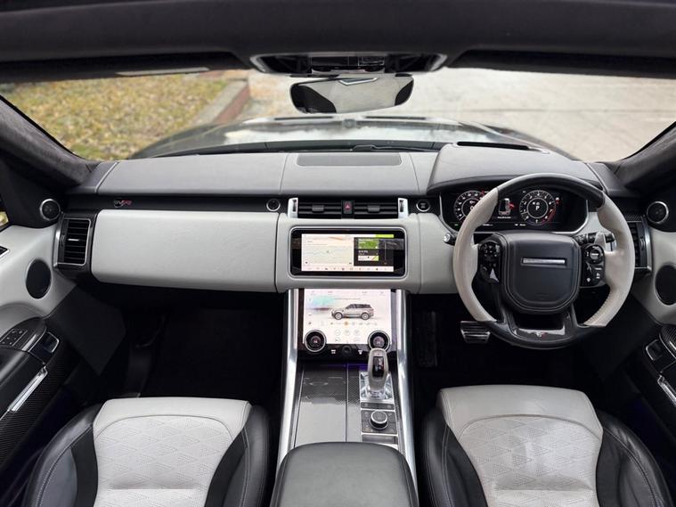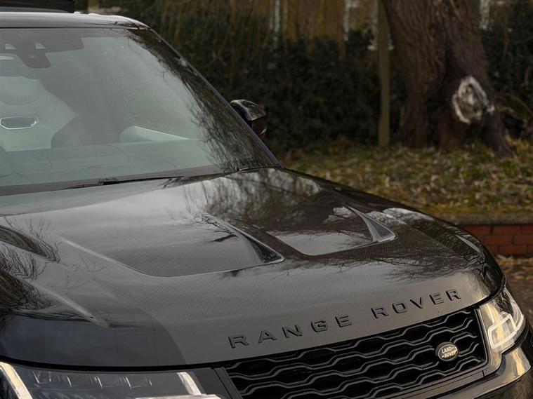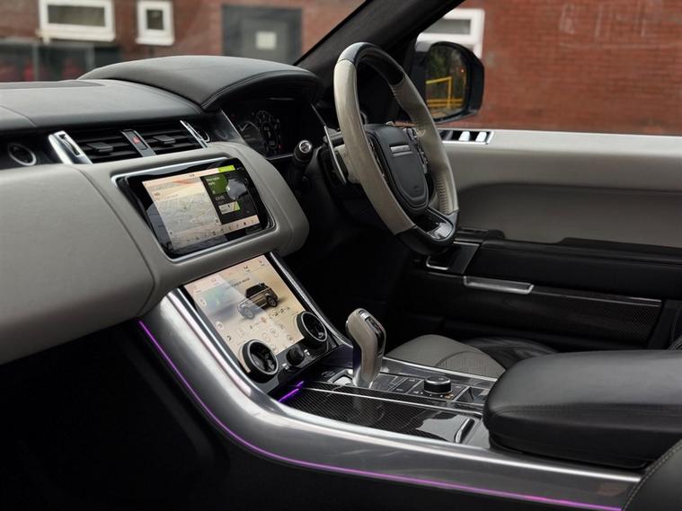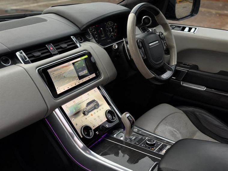 This Range Rover Sport 5.0 P575 V8 SVR Finished in Santorini Black and this vehicle comes with the following specification: 22in Alloy Wheels - 5 Split Spoke Style 5083 - Gloss Black |Perforated Windsor Ebony-cirrus Leather | SVR Carbon Fibre Exterior Pack With Exposed Carbon Fibre Bonnet | Sliding Panoramic Roof | Extended Carbon Fibre Trim Finished | Head-up Display | Meridian Signature Sound System |Pixer-Laser LED Headlights | Apple Car Play | Android Auto | Bluetooth Audio | Navigation | Bluetooth Audio | 2 Keys | Full Land Rover Service History | Reverse Camera | Heated Steering | Lane Assit | Adaptive Cruise Control | Soft Close Doors | Ghost Immobiser Fitted