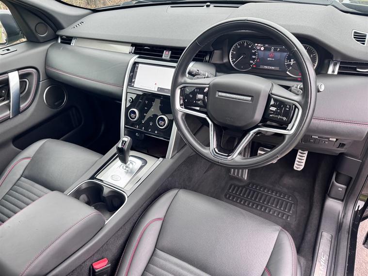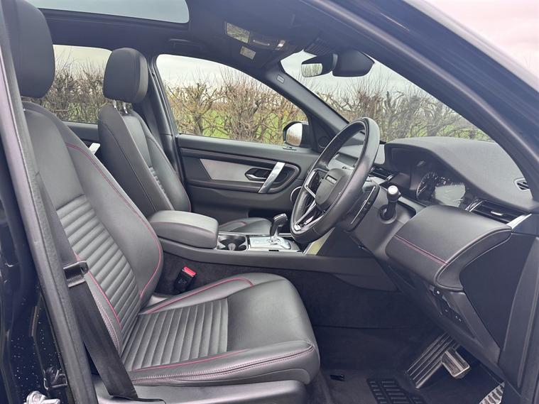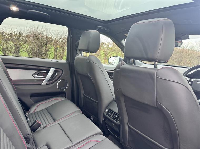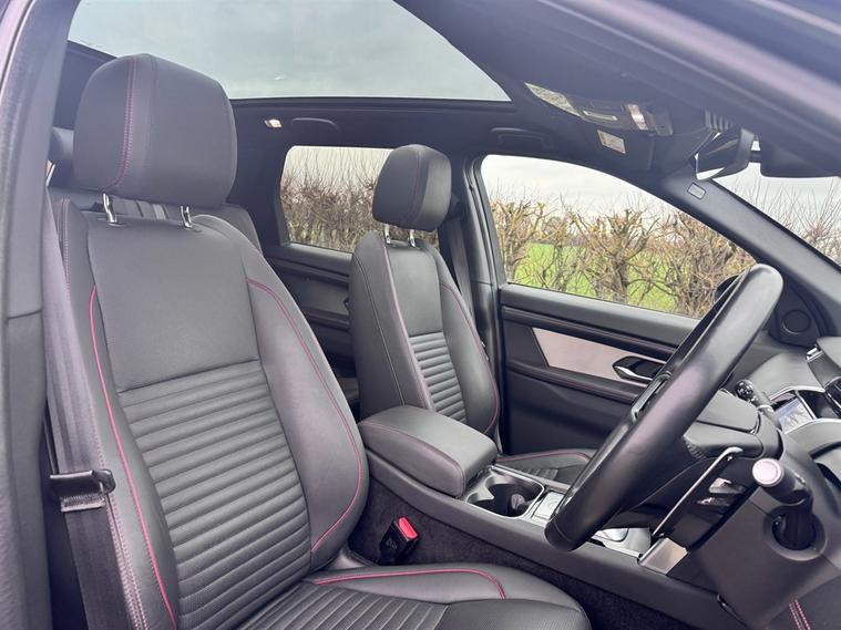 NATIONWIDE DELIVERY AVAILABLE! THIS 1 OWNER LAND ROVER DISCOVERY SPORT 2.0 P250 R-DYNAMIC HSE FINISHED IN SANTORINI BLACK METALLIC WITH BLACK LEATHER WITH RED STITCHING AND PIPING BENEFITS FROM THE FOLLOWING SPECIFICATION, 7 SEATS WITH 3RD ROW SEATING, PANORAMIC GLASS ROOF WITH ELECTRIC BLIND, 18" ALLOYS, MERIDIAN SURROUND SOUND SYSTEM, BLACK PACK, TOUCH SCREEN WITH SAT NAV, REAR VIEW REVERSE CAMERA, HEATED M/F/S/WHEEL WITH CRUISE CONTROL, PADDLE SHIFT AND VOICE CONTROL, 16 WAY ELECTRIC HEATED MEMORY SEATS WITH LUMBAR SUPPORT, ELECTRIC FOLDING EXTERIOR MIRRORS, FRONT AND REAR PARK DISTANCE CONTROL, HEATED FRONT WIND SCREEN, DUAL ZONE AIR CON CLIMATE CONTROL, AUTOMATICALLY DIMMING REAR VIEW MIRROR, AUTOMATIC HEAD LIGHTS, BLUETOOTH PHONE PREP, APPLE CARPLAY, ANDROID AUTO, PRIVACY GLASS, ISOFIX POINTS, POWER TAIL GATE/BOOT LID, CENTRE ARM REST, PAN ROOF, SEVEN SEATS, QUIRKS CAR COMPANY ARE VERY PROUD WINNERS OF RUNNER UP FOR AUTOTRADER RETAILER OF THE YEAR 2021, WINNERS OF AUTOTRADER HIGHLY RATED FOR OUR CUSTOMER SERVICE 2021/20, AND WINNERS OF CAR GURUS TOP RATED DEALER 2021/20/19. WE USE THIRD PARTY SOURCES TO OBTAIN STANDARD AND OPTIONAL FITTED FEATURES AND SPECIFICATIONS. WE CANNOT BE HELD LIABLE FOR ITS ACCURACY SO PLEASE VERIFY THESE DETAILS WHEN VIEWING THE VEHICLE PRIOR TO PURCHASE. YOU MUST PHYSICALLY CHECK THE SPECIFICATION OF THE VEHICLE ON SITE PRIOR TO PURCHASE.