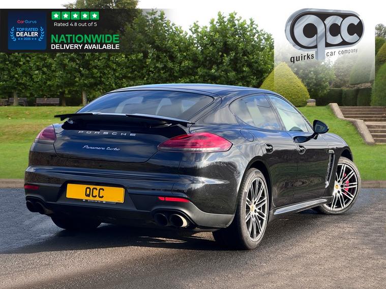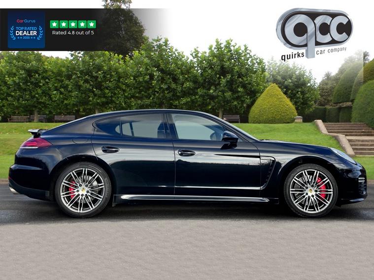 NATIONWIDE DELIVERY AVAILABLE! THIS PORSCHE PANAMERA 4.8T V8 TURBO FINISHED IN JET BLACK METALLIC WITH BLACK LEATHER BENEFITS FROM THE FOLLOWING SPECIFICATION, ELECTRIC SLIDE/TILT GLASS SUNROOF WITH BLIND, 20" 911 TURBO III ALLOYS, BOSE SURROUND SOUND SYSTEM, PASM (PORSCHE ACTIVE SUSPENSION MANAGEMENT), SPORT CHRONO PACK, SWITCHABLE SPORTS EXHAUST SYSTEM, AIR SUSPENSION, SPORTDESIGN SIDE SKIRTS, TOUCH SCREEN WITH SAT NAV, CARBON 3 SPOKE HEATED M/F/S/WHEEL WITH CRUISE CONTROL, 18 WAY ELECTRIC HEATED MEMORY ADAPTIVE SPORTS SEATS WITH LUMBAR SUPPORT, HEATED REAR SEATS, BLACK ALCANTARA HEAD LINING, CARBON FIBRE INTERIOR TRIM, INSTRUMENT CLUSTER DIALS IN BLACK/SILVER, CARBON INTERIOR PACK, PORSCHE CREST EMBOSSED ON FRONT HEAD RESTS, PORSCHE ENTRY AND DRIVE, ELECTRIC STEERING COLUMN, ELECTRIC FOLDING EXTERIOR MIRRORS, FRONT AND REAR PARK DISTANCE CONTROL, DUAL ZONE AIR CON CLIMATE CONTROL, RED BRAKE CALIPERS, AUTOMATICALLY DIMMING REAR VIEW MIRROR, AUTOMATIC HEAD LIGHTS, TINTED LED TAIL LIGHTS, BLUETOOTH PHONE PREP, ONLINE SERVICES, PRIVACY GLASS, ISOFIX POINTS, POWER TAIL GATE/BOOT LID, CENTRE ARM REST, QUIRKS CAR COMPANY ARE VERY PROUD WINNERS OF RUNNER UP FOR AUTOTRADER RETAILER OF THE YEAR 2021, WINNERS OF AUTOTRADER HIGHLY RATED FOR OUR CUSTOMER SERVICE 2021/20, AND WINNERS OF CAR GURUS TOP RATED DEALER 2021/20/19. WE USE THIRD PARTY SOURCES TO OBTAIN STANDARD AND OPTIONAL FITTED FEATURES AND SPECIFICATIONS. WE CANNOT BE HELD LIABLE FOR ITS ACCURACY SO PLEASE VERIFY THESE DETAILS WHEN VIEWING THE VEHICLE PRIOR TO PURCHASE. YOU MUST PHYSICALLY CHECK THE SPECIFICATION OF THE VEHICLE ON SITE PRIOR TO PURCHASE.