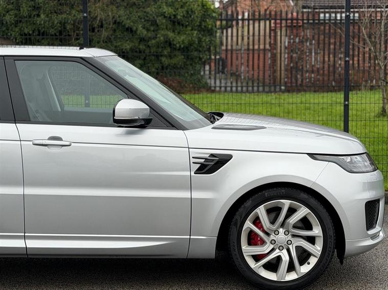 This Range Rover Sport P400e HSE Dynamic Finished in RHODIUM SILVER/INDUS SILVER and this vehicle comes with the following specification: 21in Alloy Wheels - 5 Split Spoke Sytle 5007 | 16-way Memory Front Seats | Heated Front and Rear Seats | Bluetooth Connectivity | Fixed Panoramic Roof |DAB - Digital Audio Broadcast | Meridian Surround Sound System | Rear View Camera | InControl Apps | Navigation | 2 Keys | Full LR History