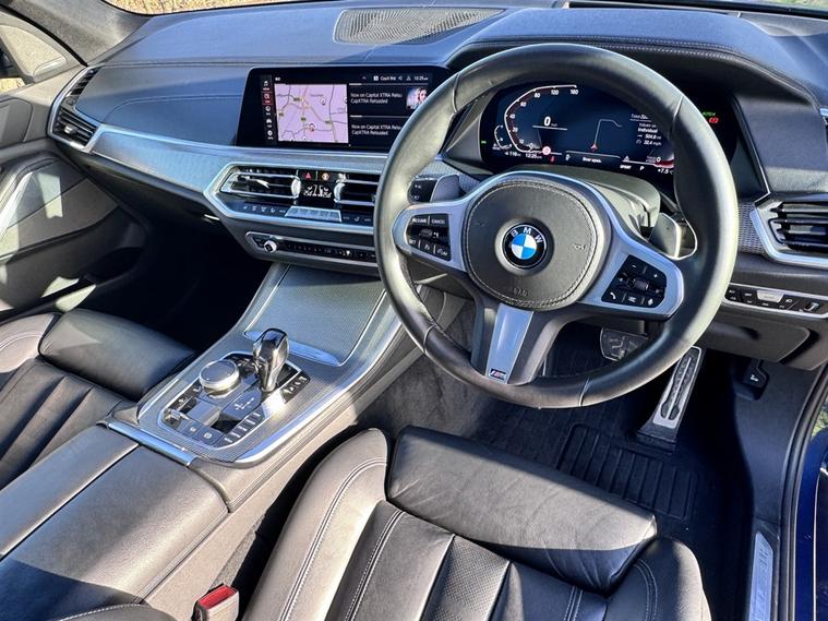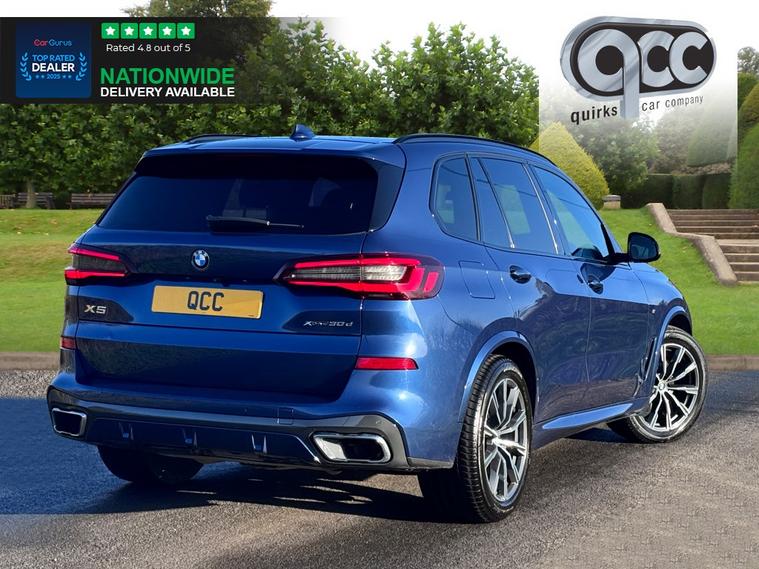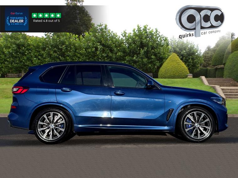 NATIONWIDE DELIVERY AVAILABLE! THIS BMW X5 3.0 30d MHT M SPORT xDRIVE FINISHED IN PHYTONIC BLUE METALLIC WITH PERFORATED VERNASCA BLACK LEATHER BENEFITS FROM THE FOLLOWING SPECIFICATION, SKY LOUNGE ELECTRIC PANORAMIC GLASS SUNROOF WITH ELECTRIC BLIND, TECHNOLOGY PACK, VISIBILITY PACK, M SPORTS PACK, 20" ALLOYS, HARMAN KARDON SOUND SYSTEM, HUD (HEAD UP DISPLAY), TOUCH SCREEN WITH SAT NAV, REAR VIEW REVERSE CAMERA, 360 CAMERA, DIGITAL DASH, M/F/S/WHEEL WITH CRUISE CONTROL, PADDLE SHIFT AND VOICE CONTROL, ELECTRIC HEATED MEMORY SPORTS SEATS, ELECTRIC STEERING COLUMN, ELECTRIC FOLDING EXTERIOR MIRRORS, FRONT AND REAR PARK DISTANCE CONTROL, DUAL ZONE AIR CON CLIMATE CONTROL, BLUE BRAKE CALIPERS, AUTOMATICALLY DIMMING REAR VIEW MIRROR, AUTOMATIC HEAD LIGHTS, BLUETOOTH PHONE PREP, APPLE CARPLAY, ANDROID AUTO, PRIVACY GLASS, ROOF RAILS, POWER TAIL GATE/BOOT LID, ISOFIX POINTS, CENTRE ARM REST, PAN ROOF, TECH PACKAGE, QUIRKS CAR COMPANY ARE VERY PROUD WINNERS OF RUNNER UP FOR AUTOTRADER RETAILER OF THE YEAR 2021, WINNERS OF AUTOTRADER HIGHLY RATED FOR OUR CUSTOMER SERVICE 2021/20, AND WINNERS OF CAR GURUS TOP RATED DEALER 2021/20/19. WE USE THIRD PARTY SOURCES TO OBTAIN STANDARD AND OPTIONAL FITTED FEATURES AND SPECIFICATIONS. WE CANNOT BE HELD LIABLE FOR ITS ACCURACY SO PLEASE VERIFY THESE DETAILS WHEN VIEWING THE VEHICLE PRIOR TO PURCHASE. YOU MUST PHYSICALLY CHECK THE SPECIFICATION OF THE VEHICLE ON SITE PRIOR TO PURCHASE.