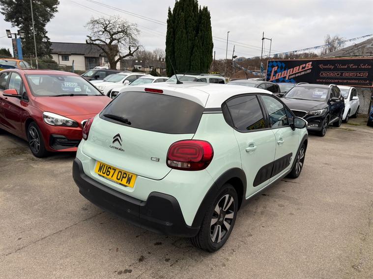Citroen C3 1.2 Flair in green. An awesome low mileage example here, just 35k miles from brand new. As you can imagine the car drives incredibly well. This 2017 model features a 1.2L petrol engine, offering a remarkable combined fuel consumption of 60.1mpg, making it an ideal choice for those looking to save on fuel costs while enjoying a comfortable drive. With just 35, 000 miles on the odometer, this vehicle has plenty of life left to ensure reliability and enjoyment for its next owner. Great spec including Sat-Nav, Bluetooth Hands Free, Bluetooth Audio Streaming, DAB Radio, Parking Sensors, A/C, Alloy Wheels, USB, Cruise Control etc. Don't miss out on the chance to own this fantastic Citroen C3. Contact us to book a test drive today, or call 02921223506 to speak with one of our friendly team members at Coopers Car Sales in Caerphilly, Glamorgan.