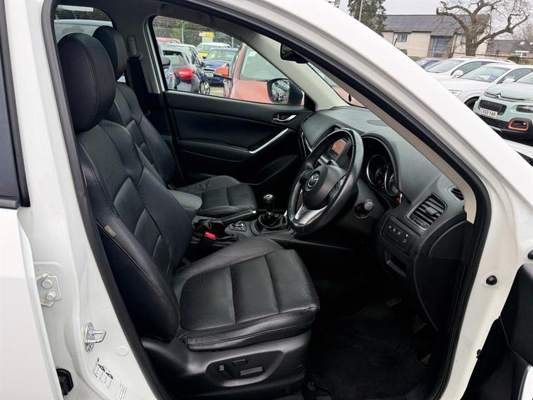 Mazda CX-5 2.2 Lux Nav in bright white. An incredibly well cared for car, comes with a folder full of servicing invoices. This lovely car is powered by a reliable 2.2L diesel engine and features a manual transmission, making it an excellent choice for both urban and rural driving. Enjoy the benefit of low annual road tax at only 35, allowing you to save more while enjoying the road. Huge spec being the Lux with Full Black Leather Upholstery, Heated Seats, Sat-Nav, Bluetooth Hands Free, Bluetooth Audio Streaming, Cruise Control, Dual Zone Climate Control, Front & Rear Parking Sensors, Sunroof, A/C, Allloy Wheels Don't miss out on the opportunity to own this fantastic vehicle. Contact us to book a test drive today or call 02921223506.