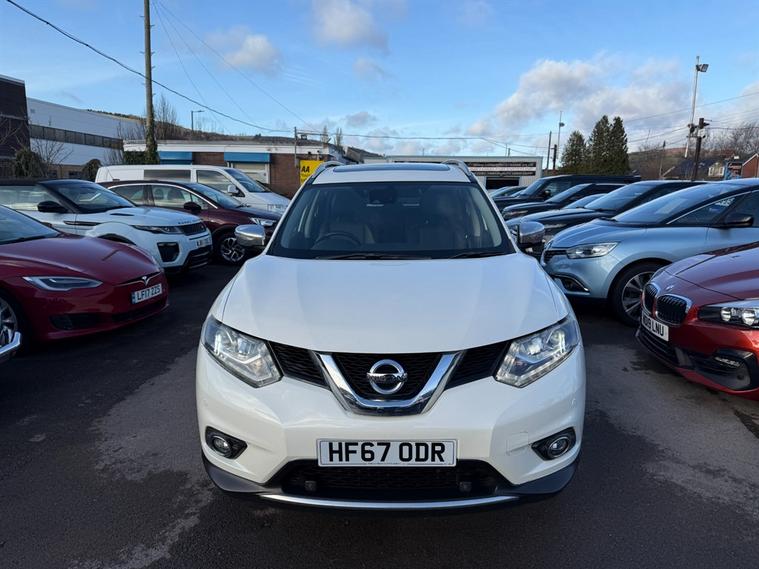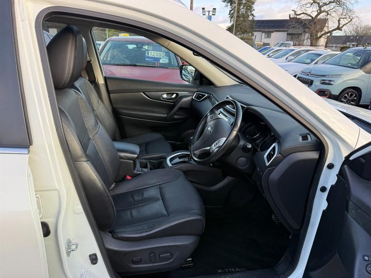 Nissan X-Trail 2.0 DCi Tekna Automatic 7 Seater in metallic white. In simply fantastic condition both inside and out, drives as good as it looks too. A versatile and spacious estate that combines practicality with comfort. This 2017 model features a powerful 2.0L diesel engine that delivers an impressive 174 BHP, ensuring a smooth and responsive drive. The X-Trail is designed to accommodate families or groups with its 7 seats, making it the perfect choice for both everyday use and adventurous outings. Huge spec being the Tekna model including Full Black Leather Upholstery, Heated Seats, 360 Degree Parking Cameras, Sat-Nav, Bluetooth Hands Free, Bluetooth Audio Streaming, DAB Radio, Dual Zone Climate Control, Cruise Control, Panoramic Roof, Powered Tailgate, Front & Rear Parking Sensors, USB, A/C Alloy Wheels....the list goes on and on. Don't miss out on the opportunity to own this exceptional Nissan X-Trail. Contact us to book a test drive today or call 02921223506.