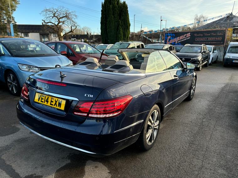 Mercedes E220 2.2 CDi SE Convertible Automatic in metallic blue. An absolutely stunning example here, in fantastic condition both inside and out, drives as good as it looks. This model combines a powerful 2.2L diesel engine with a smooth 7-speed automatic transmission, delivering a remarkable driving experience. With its elegant blue exterior and stylish design, the E220 stands out on the road, making every journey a pleasure. Massive spec including Full Cream Leather Upholstery, Heated Seats, Sat-Nav, Cruise Control, Dual Zone Climate Control, Bluetooth Hands Free, Bluetooth Audio Streaming, Front & Rear Parking Sensors, A/C, Alloy Wheels etc. Dont miss your chance to own this remarkable Mercedes E220 Convertible. Contact us to book a test drive today or call 02921223506.