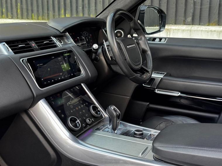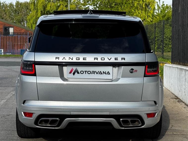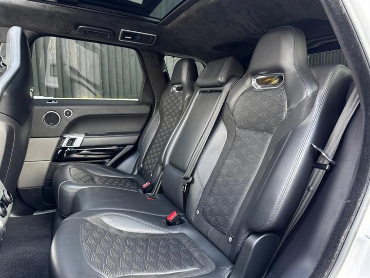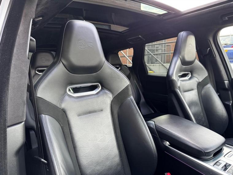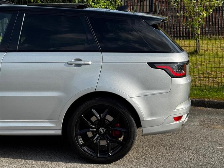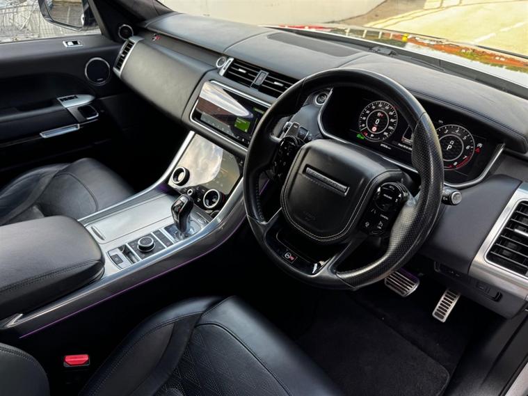 This Range Rover Sport 5.0 P575 V8 SVR Auto Finished in SVO Premium Palette Silver and this vehicle comes with the following specification: Semi Aniline Perforated Leather - Ebony | SVR Carbon FIbre Exterior Pack with Exposed Carbon Fibre Bonnet | Meridian Signature Sound System | Heated Front Seats | Heated Rear Seats | Ventillated Front & Rear Seats | 4 Zone Climate Control | Soft Door Close | Morzine Ebony Headlining | Navigation | Bluetooth Audio & Connectivity | DAB & Radio | Ambient lighting | Apple Car Play
