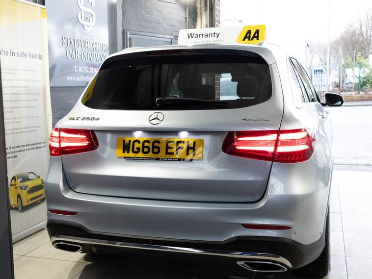 Electric Panoramic Roof With Electric Inner Blind, Full Black Leather Interior In Excellent Condition, Full Electric Adjustable Seats With Memory, Heated Seats, SAT NAV, Bluetooth Telephone, Bluetooth Audio, CD, DAB Radio, USB, Rear Camera, Front + Rear Parking Sensors, Cruise Control, Voice Control, Collision Assist, Attention Assist, Graphic Assist, Electric Adjustable Steering Column, Electric Tailgate, Electric Windows, Electric Door Mirrors + Auto Folding + Heated, Remote Central Locking (2 Keys), Drivers Information System, 19" Alloy Wheels, Tyre Pressure Monitoring, Ambient Interior Colour Change Lighting, Illuminated Sill Steps, Mercedes LED Headlights, Rear Privacy Windows, Dynamic Ride System, Automatic Headlights + Wipers, Dual Sided Climate Control, Easy Entry, Keyless Entry + Start, Isofix, AMG Overmats, Leather Multifunction Steering Wheel, A Full Spec Sheet Is Present, Previous Lady Owner, Comes With 8 Service Entries, 7 Mercedes Main Dealer Entries + 1 Other, Last Serviced At 96K Miles, Excellent Condition Throughout, Drives Absolutely Superb, Still Feels Tight & Precise To Drive, Super Economical & Reliable, Stunning Looking High Spec GLC 250d Finished In Diamond Silver, Extremely Well Cared For By its Previous Owners & Maintained To A High Standard Using Mostly A Mercedes Main Agent, MOT 1/6/2026, 12 Months AA Breakdown Cover Included, 6 Months AA Warranty Included, Extended AA Warranties Available, *Low Rate Finance Available* Delivery Available * Viewing 7 Days A Week * SUNDAY APPOINTMENT ONLY *