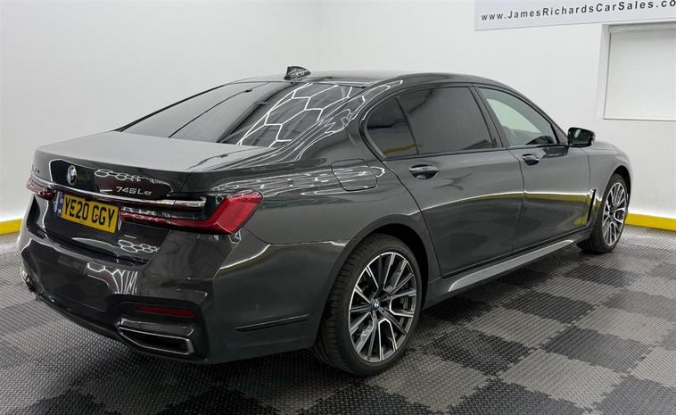 This 2020 BMW 745Le M Sport is a clear example of sophisticated engineering, boasting a pristine vehicle history. This four wheel drive saloon features a powerful 3.0 litre petrol plug in hybrid engine, meeting Euro 6 emission standards. The M Sport trim enhances its dynamic appeal, complemented by striking 20 inch M Light Star Spoke Style 817M Bi Colour alloy wheels fitted with run flat tyres. Inside, you will find the M Sport Plus Package and the Technology Package, which includes a rear view camera for easier parking. Experience exceptional performance with this 7 Series, accelerating from 0 to 62 miles per hour in just 5.1 seconds, a testament to its advanced hybrid powertrain and dynamic handling. The inclusion of the Rear Seat Comfort Package, which also features a heated steering wheel, ensures that every journey is as comfortable as it is exhilarating. These carefully selected features and impressive performance figures set this BMW 745Le M Sport apart from other vehicles in its class.