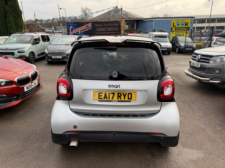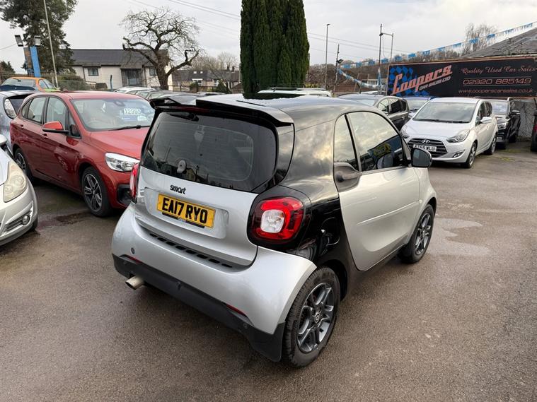 Smart Fortwo Coupe 0.9 Prime Premium in metallic Silver. An absolutely gorgeous example here, low mileage too. Just 49k miles from brand new. As you can imagine the car is in superb condition and drives incredibly well. This 2017 model is powered by a fuel-efficient 0.9L petrol engine, boasting an impressive combined fuel consumption of 68.9mpg, making it an ideal choice for urban driving and everyday commutes. Huge spec too including Full Black Leather Upholstery, Heated Seats, Sat-Nav, Cruise Control, Climate Control, Bluetooth Hands Free, Bluetooth Audio Streaming, DAB Radio, Parking Sensors, A/C, Alloy Wheels, USB. Don't miss out on this fantastic opportunity to own a Smart Fortwo Coupe that combines style, efficiency, and technology. Contact us to book a test drive today, or call 02921223506 today.